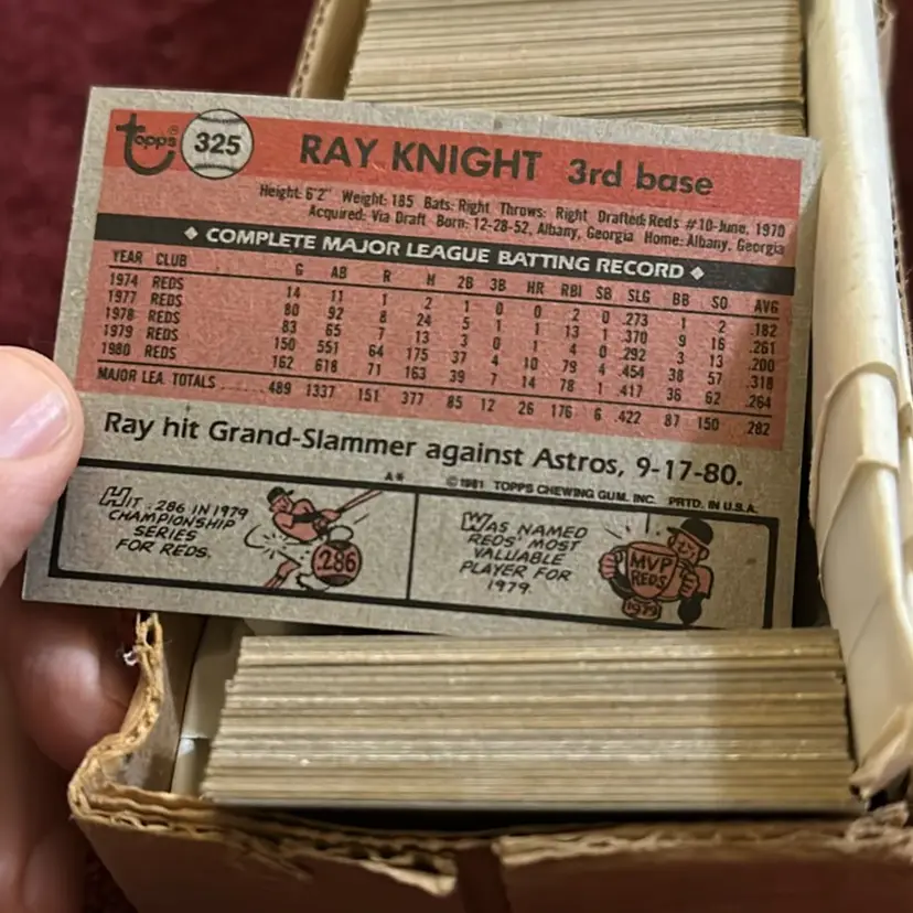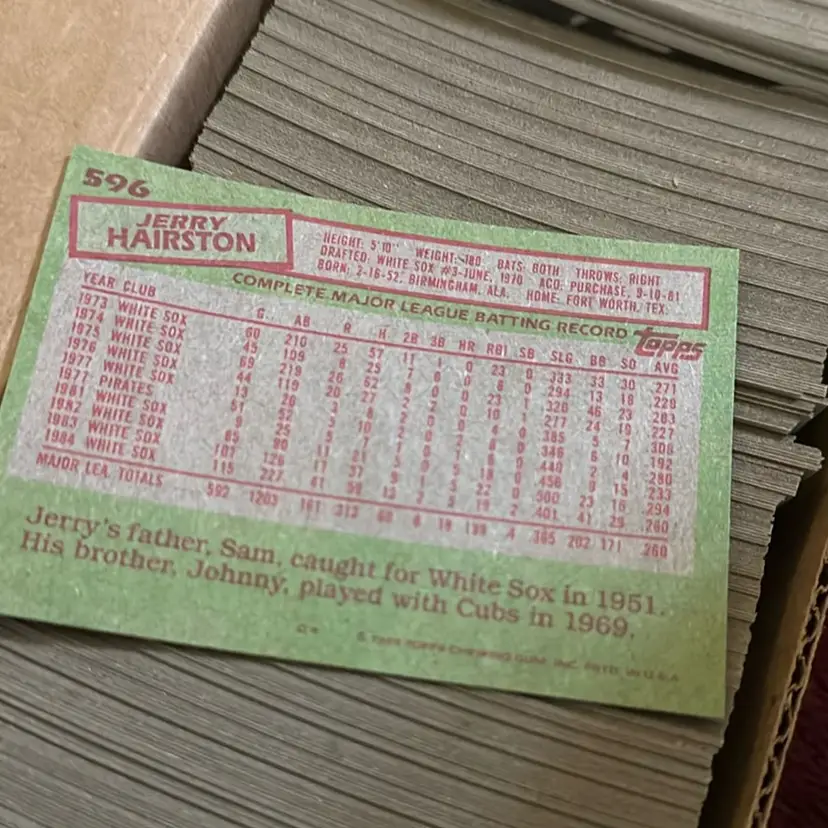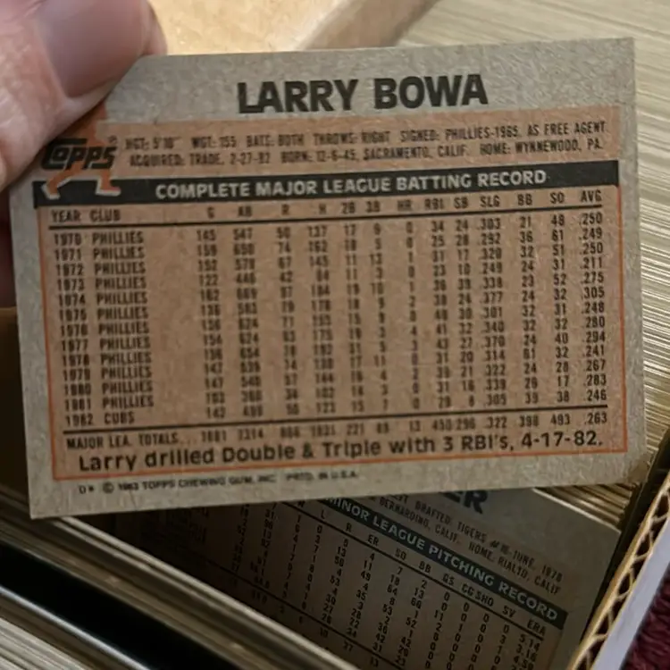 No, I did not raid American Arbitrage’s non-discretionary inventory of cards. Just a collection of cards I amassed over several years of thrifting. Mostly baseball with some football and basketball cards as well as a few non-sport cards. I have not picked through any of this as I do not have the time or, more to the point, the patience to do so. Some junk wax in here as well as box sets that appear to be from the early to mid 1980s. I make no claims about completeness of any of these sets; I’m guessing that this mass of cards has had more picks than this year‘s Dallas Cowboys offense (Go Birds!). When I weighed them in their totes, the total weight was 48 pounds, so I am calling it 40 pounds to be conservative. Totes are not included, and the loose cards will be packaged neatly for shipping. Condition of cards range from near mint (namely those in the boxes) to acceptable. Some pictures show the backs of cards to give you an indication of the year and company of the box sets, not to indicate the most valuable cards that might be in there (if there is a reason why I would show Larry Bowa of the 1980s, it is to represent the disappointment that was the Philadelphia team from about 1985 to 1992, but I digress).