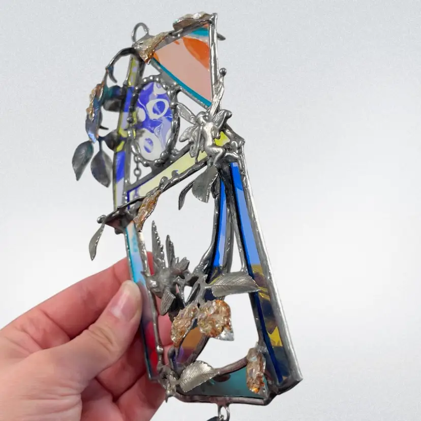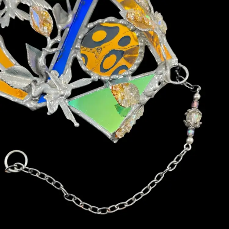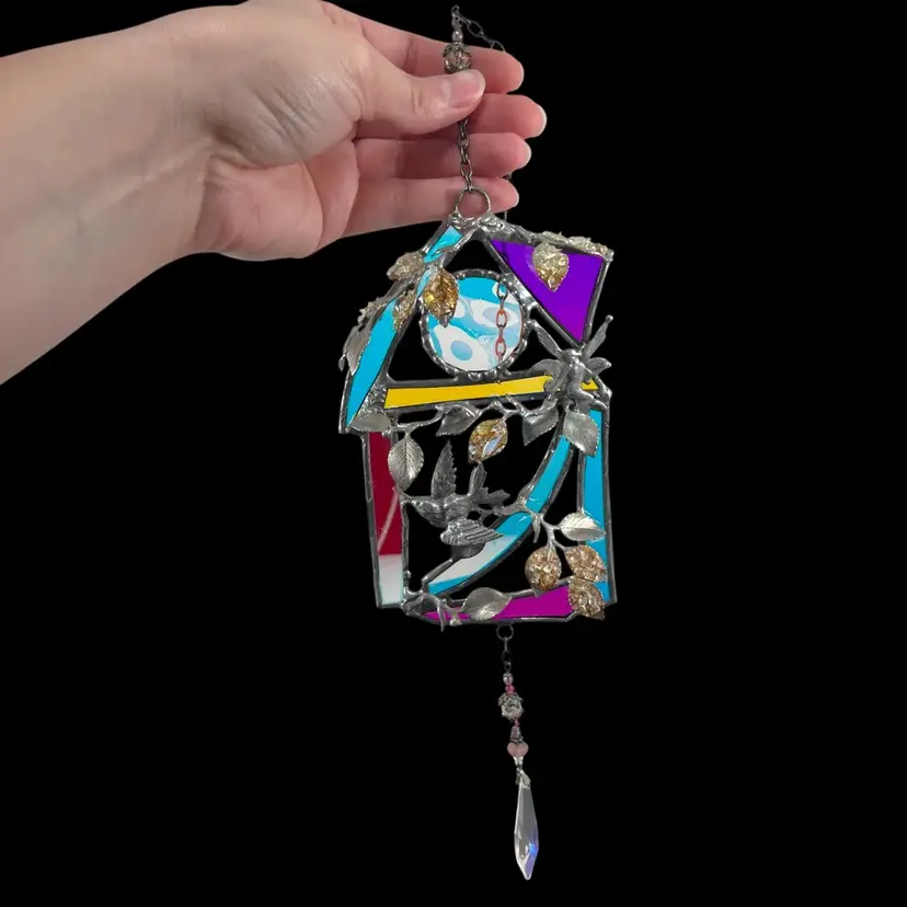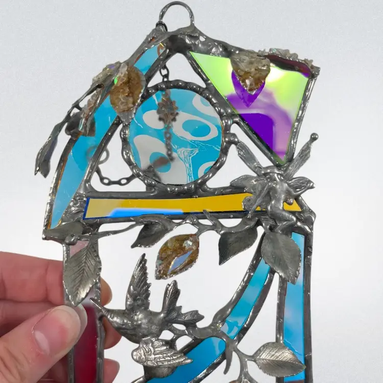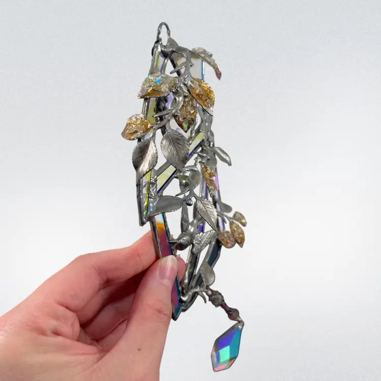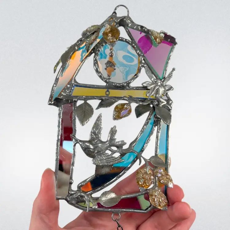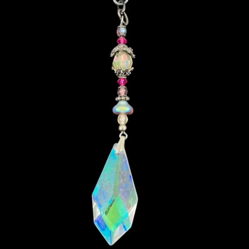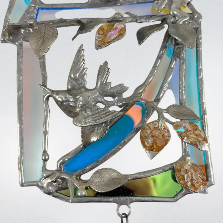 Body is approximately 6” x 4” x 1.75”. Chain hanging from top is approximately 7.5” long and crystal strand hanging from bottom is approximately 4” long. No chips or cracks.