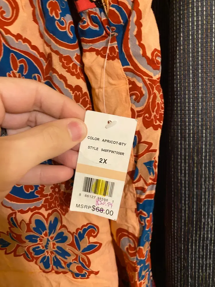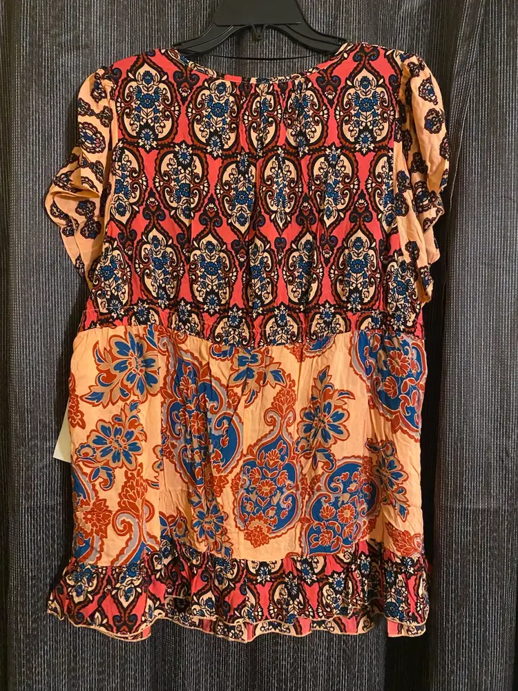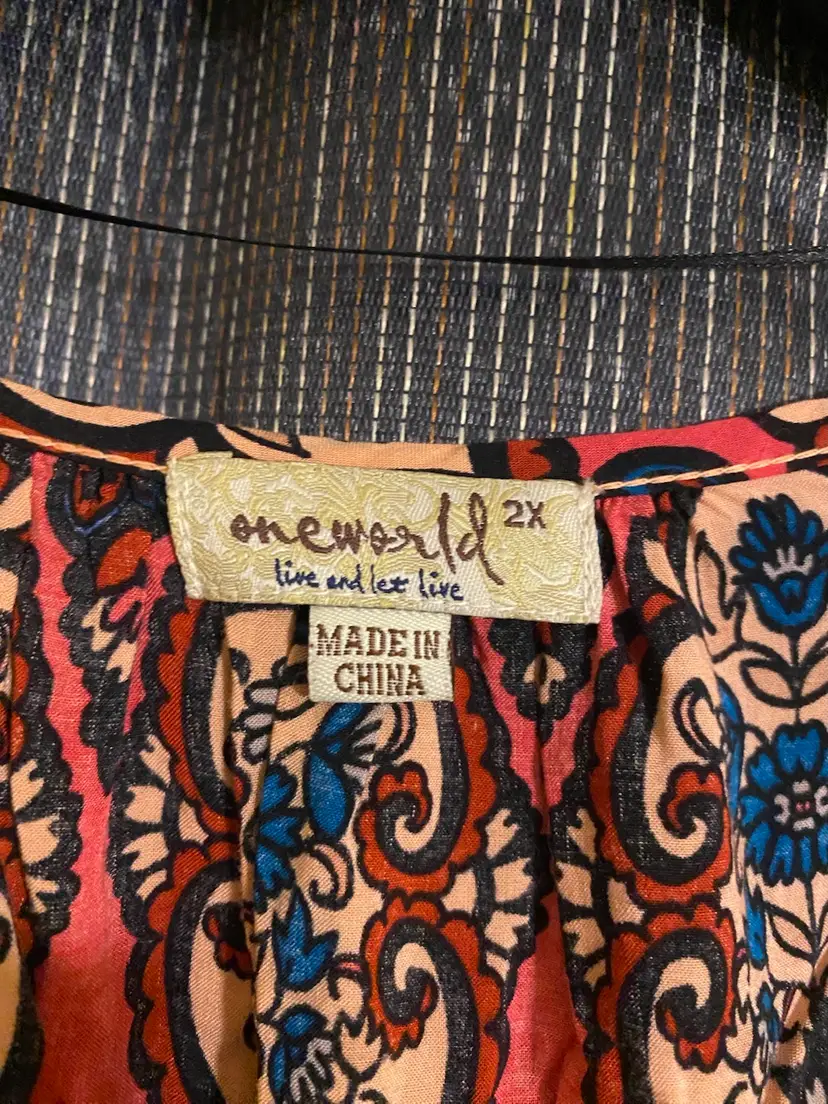 You are purchasing one Women's Size 2XL Apricot Color Abstract Floral Pattern w/ Embroidery Short Sleeve Blouse by One World. This Blouse is brand new w/ Tags. $68 original MSRP.