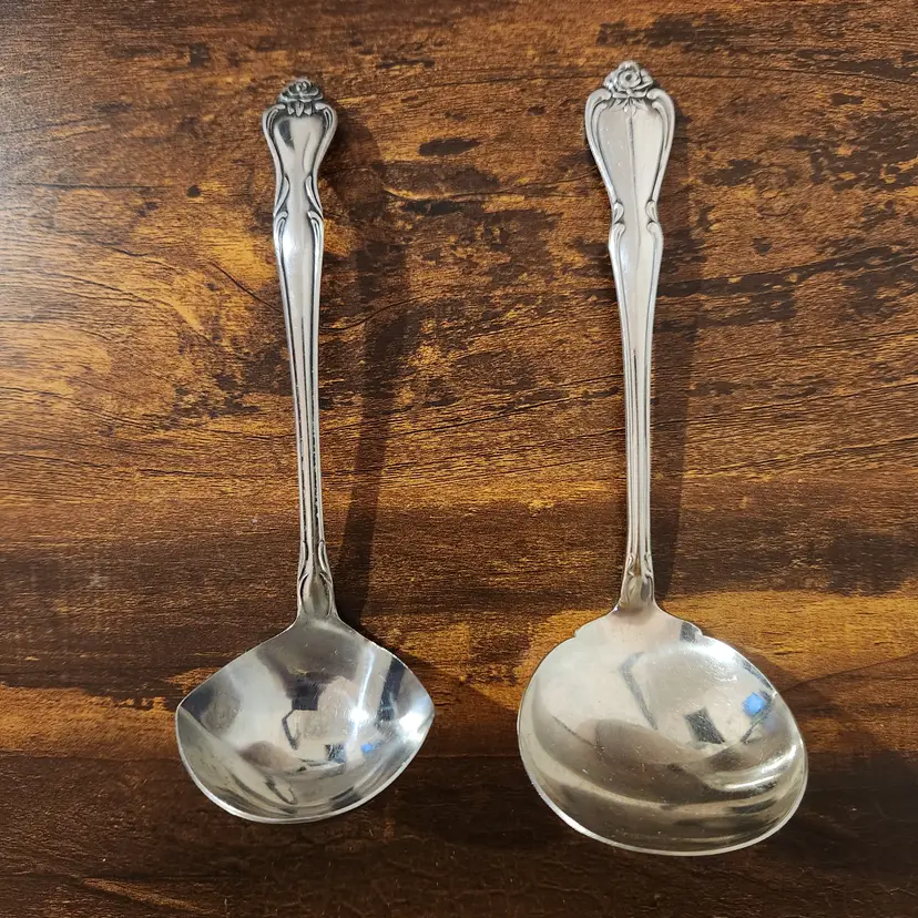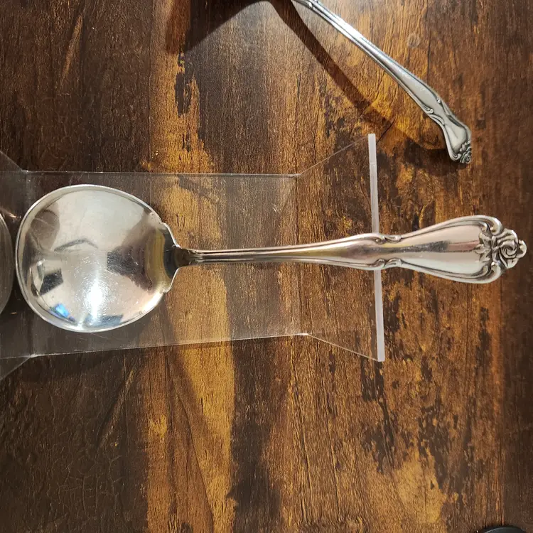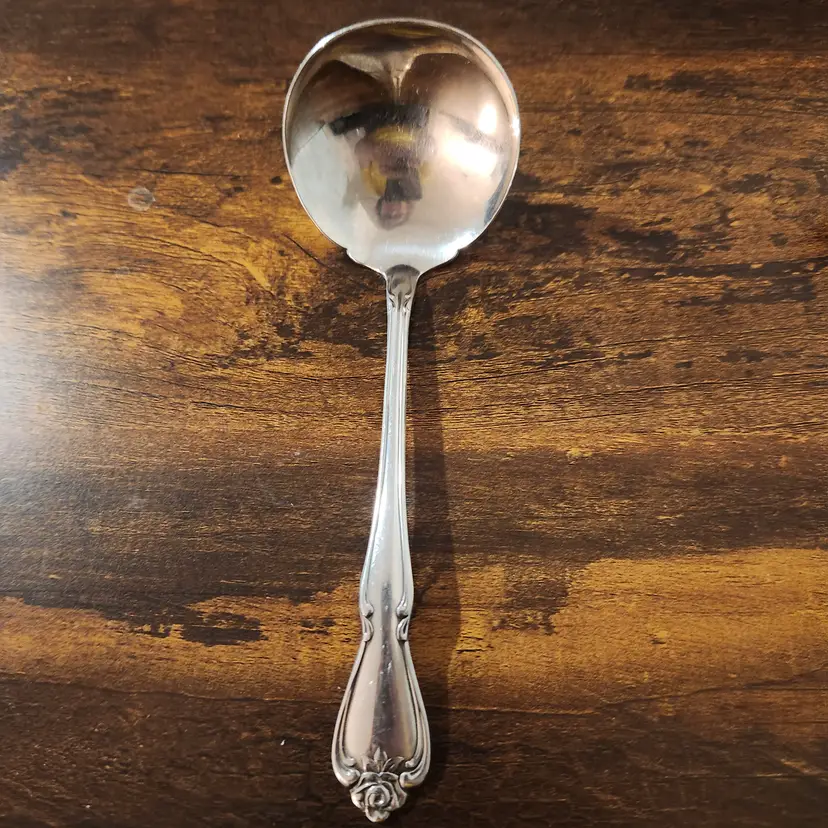 Stainless gravy ladle by Oneida for Rogers in the ARBOR / TRUE ROSE pattern. This pattern is a close match to Epic/Ecko Regal Rose and I also have a ladle from that pattern listed if you would like a less expensive one (see last photo.) This size/shape ladle is very hard to find.
