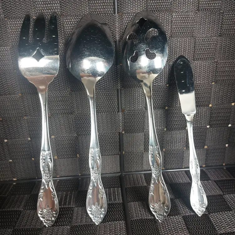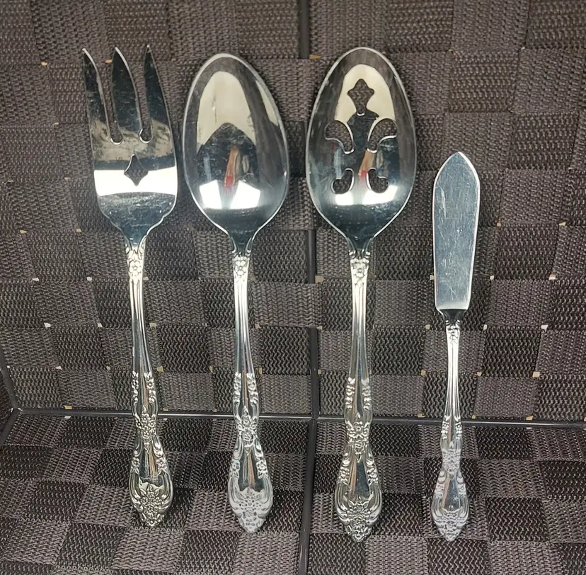Set includes: Serving Fork, Spoon, Slotted Spoon and Flat Handle Master Butter Knife