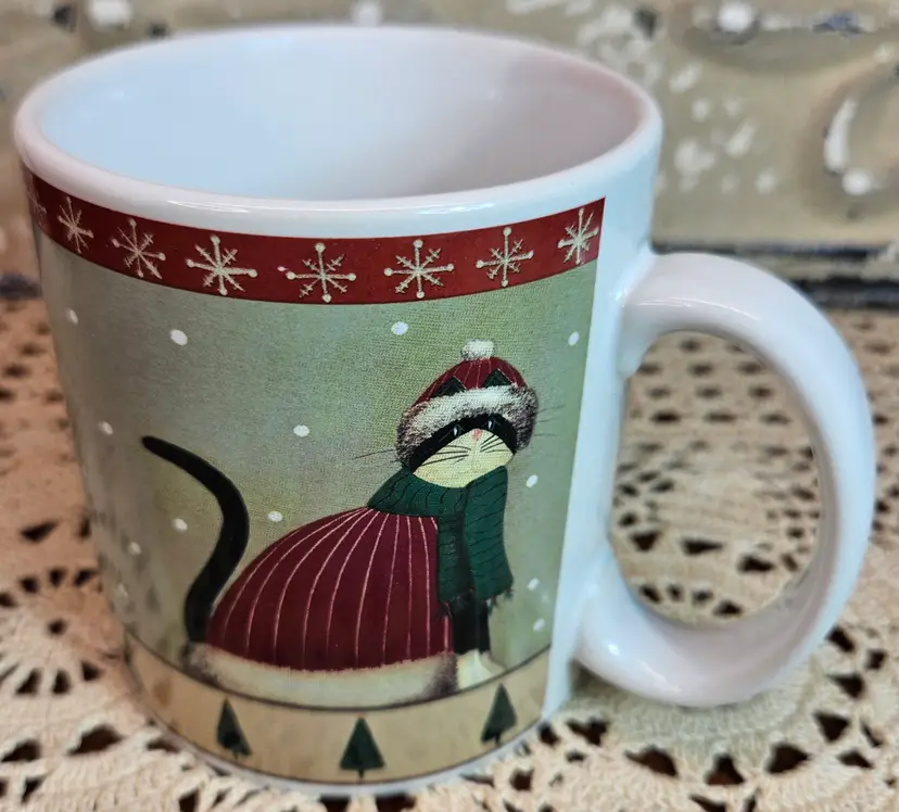 This adorable winter mug, depicting a cat, is in excellent, used condition, with no appreciable chips, scratches or cracks. Measurements are depicted in the pictures of the item or listed in the description of the item. Please review the photos, as they are part of the item description. Photos will always reveal noticeable defects, as will my description. Any white “blemishes” that are not pointed out in this section are from the lighting that I use for my photos. If you need clarification, please reach out to me.