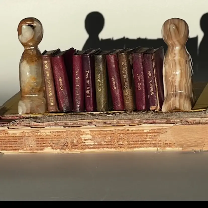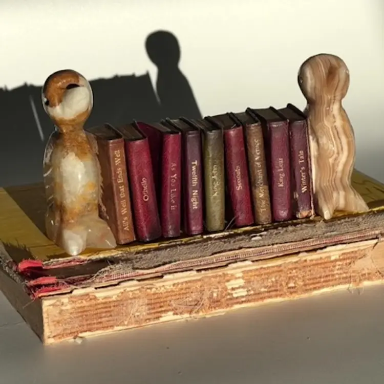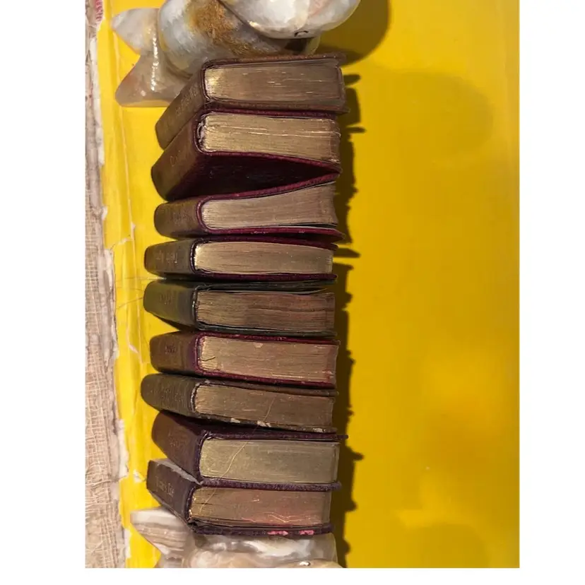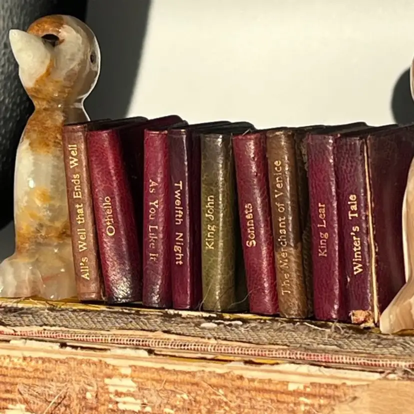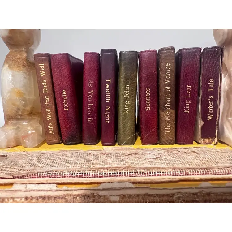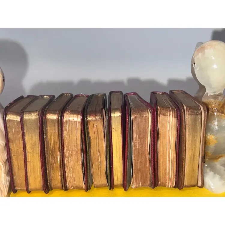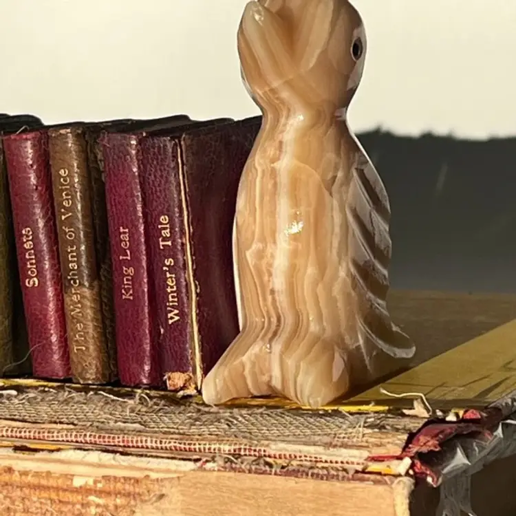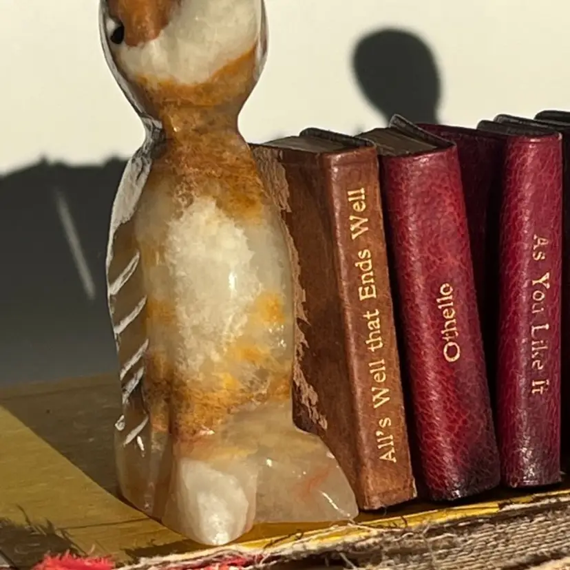 Two onyx hand carved birds used as bookends. Approximate measurements 3 1/4” long and 2” wide bottom of birds 2”x1 1/2” miniature books All for only $40.00 Lovely set for your home library Conversation pieces for sure! Please feel free to ask any questions Blessings, Bonnie & Darren :-)