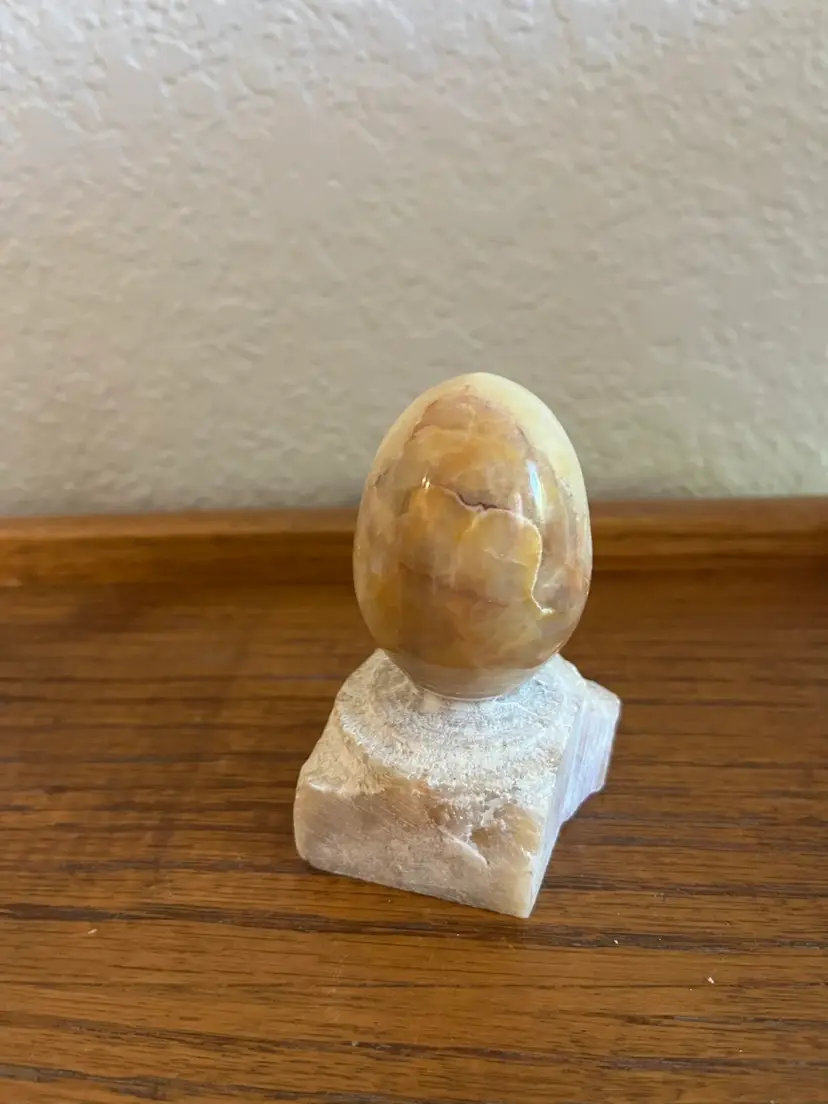 This pretty onyx egg is 3 1/2” tall. No chips or cracks