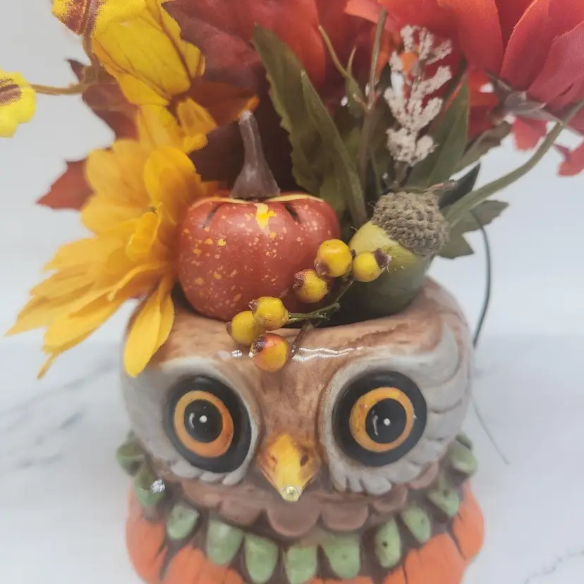 Created by Alex Manuel at bfvintage This is a one of a kind fall themed Assemblage featuring a Johanna Parker Owl base.