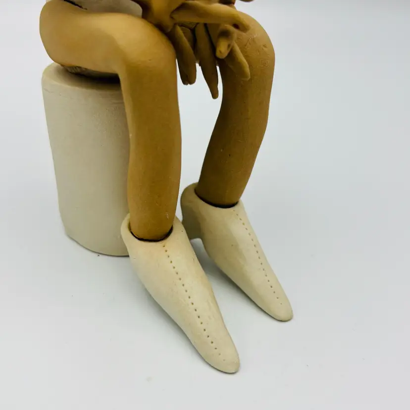 For sale is a OOAK Weirdo Grinning Lady Dog Figurine Clay Sculpture in Body Suit Big Shoes