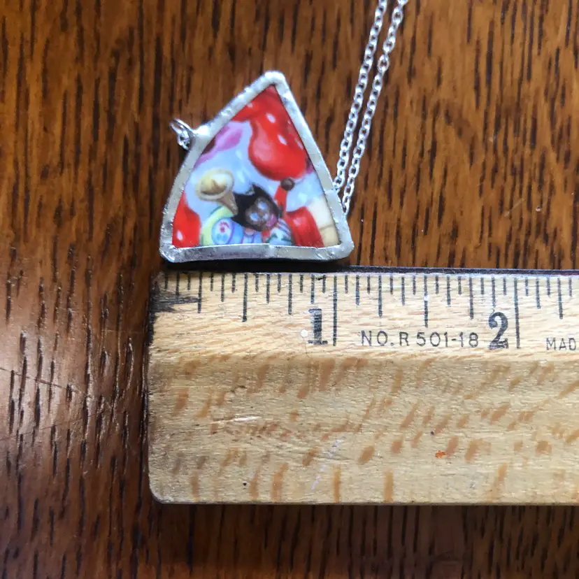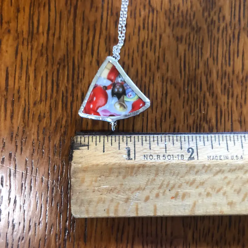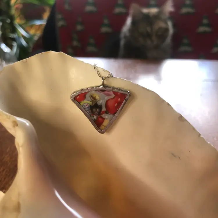 Add a touch of holiday magic with this playful artisan-made pendant from a charming Santa collector plate. Handcrafted with care, this unique necklace measures 1.25 by 1 inch—perfect for spreading festive cheer wherever you go. Celebrate the season with a one-of-a-kind accessory that’s as joyful and creative as you are!