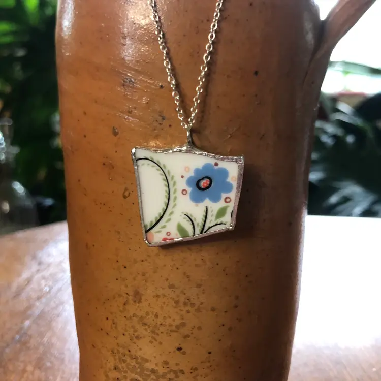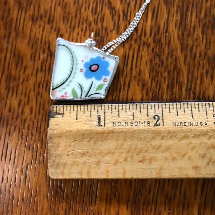Oops turned into art! This one-of-a-kind pendant rescues a broken rosemaling plate and gives it a second life as wearable magic. At 1 1/8" x 1", it's the perfect size to show off those hand-painted details without overwhelming your neckline. Handcrafted with care, each piece is totally unique—no two are alike. Ideal for anyone who loves quirky charm, sustainable style, and jewelry with a story to tell.