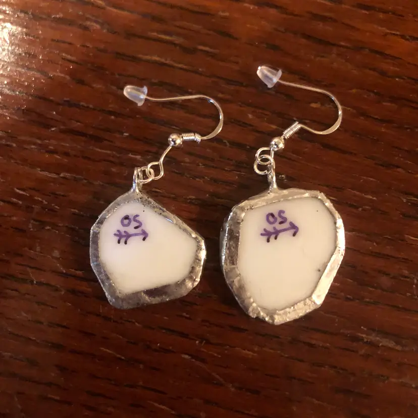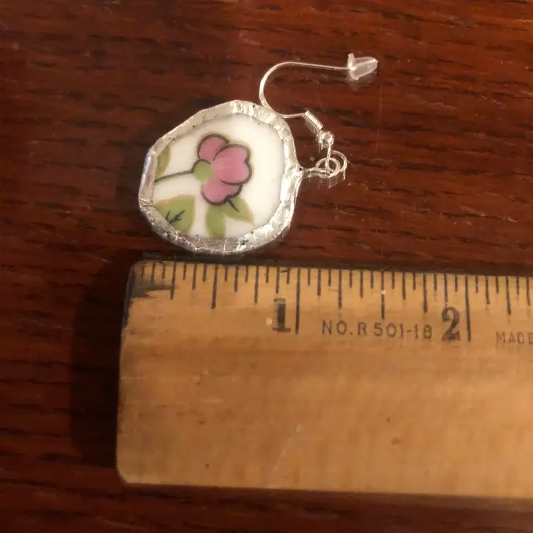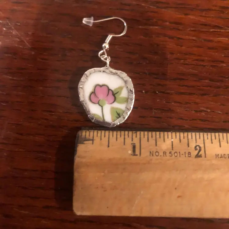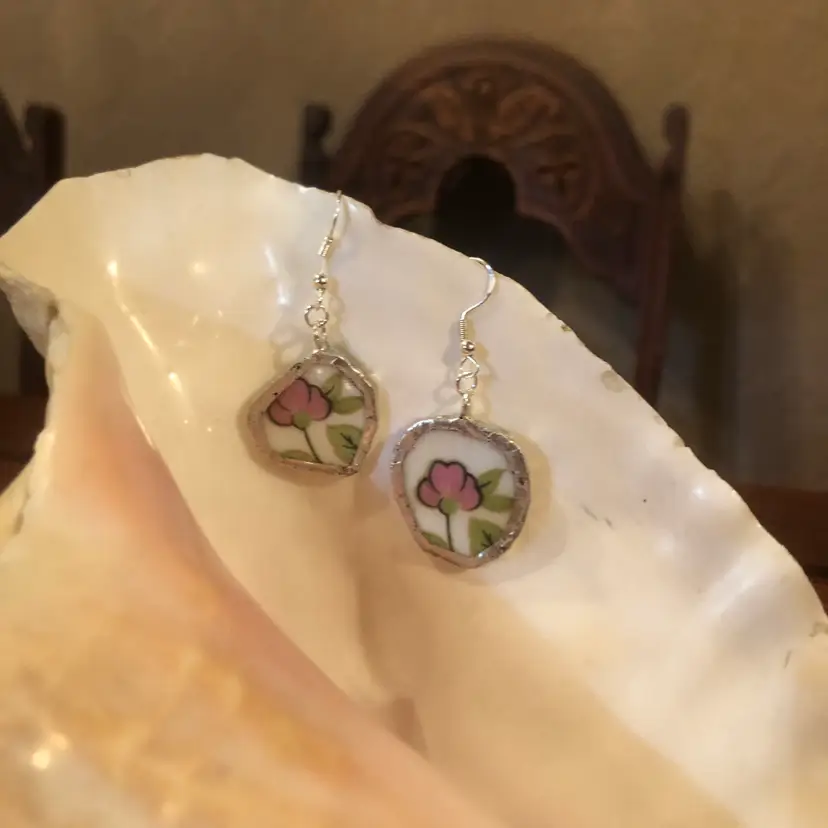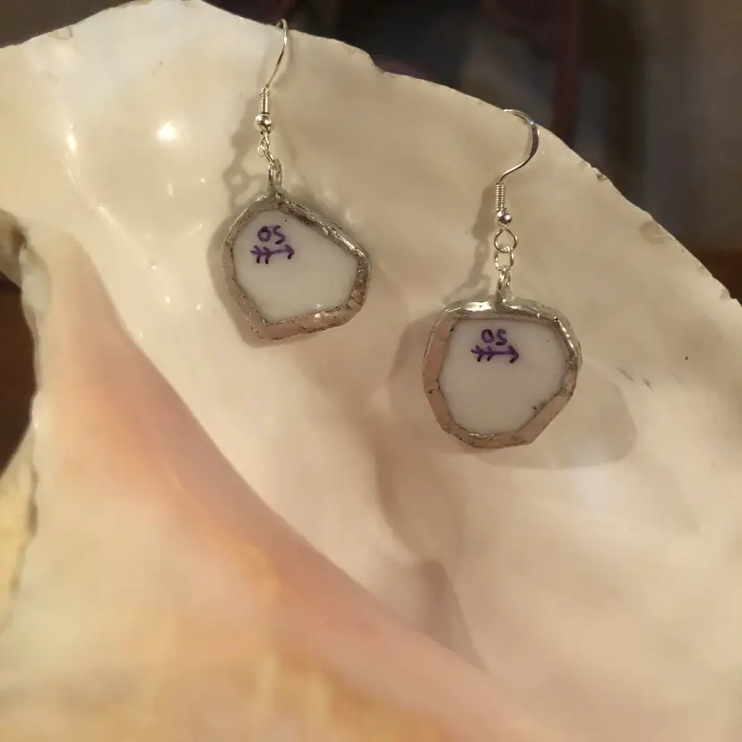 Upcycled charm meets whimsical storytelling in these one-of-a-kind dangle earrings. Crafted from vintage Aladdin plate fragments featuring beloved Fantasia pattern, this pair celebrates the magic of sustainable artisan craftsmanship. The broken pieces are thoughtfully transformed into wearable art—no two pairs identical. Perfect for vintage collectors, and anyone who loves conversation-starting accessories with a splash of nostalgic enchantment.