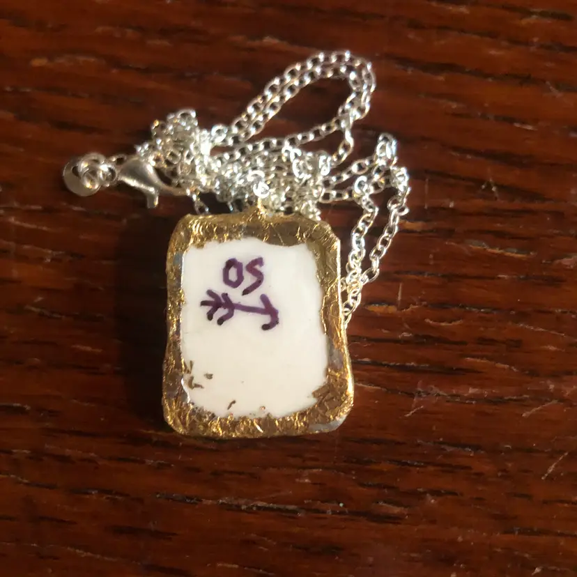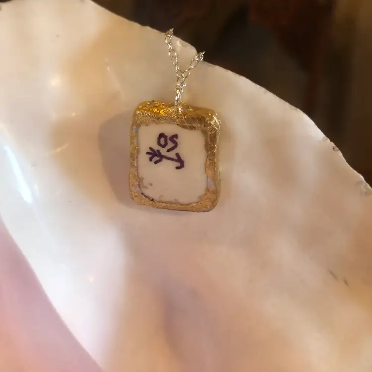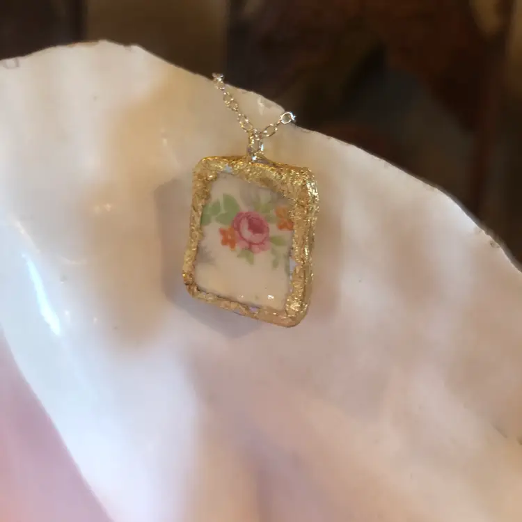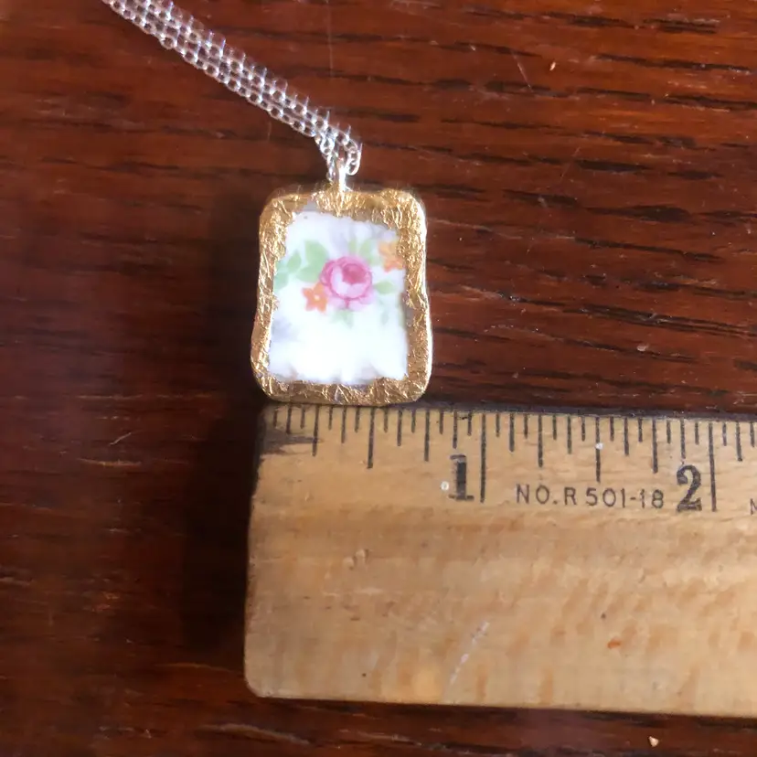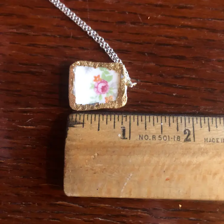 Celebrate imperfection with this charming handcrafted pendant, lovingly created from reclaimed pottery shards. Each piece tells its own story—no two are alike. Measuring a petite 3/4" x 1", this artisan-made treasure showcases the beauty of broken things made whole again. It's a wearable reminder that flaws are features. Perfect for pottery lovers, eco-conscious fashionistas, and anyone who appreciates the quirky, the handmade, and the authentically imperfect.