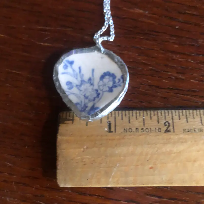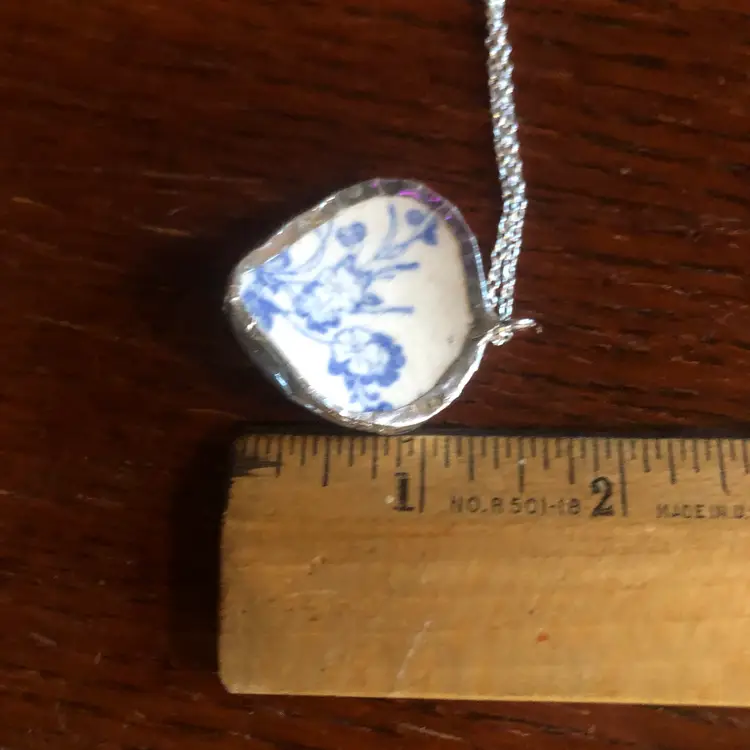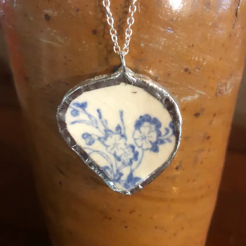 Transform broken into brilliant with this charming artisan pendant! Salvaged from a vintage blue floral plate, each necklace is a tiny masterpiece of upcycled beauty. At 1.25" x 1.5", this handcrafted treasure sits perfectly, showcasing nature-inspired patterns that spark conversation. Whether you're a pottery enthusiast, sustainability champion, or just love quirky, one-of-a-kind jewelry, this pendant proves that the best things in life are beautifully imperfect.