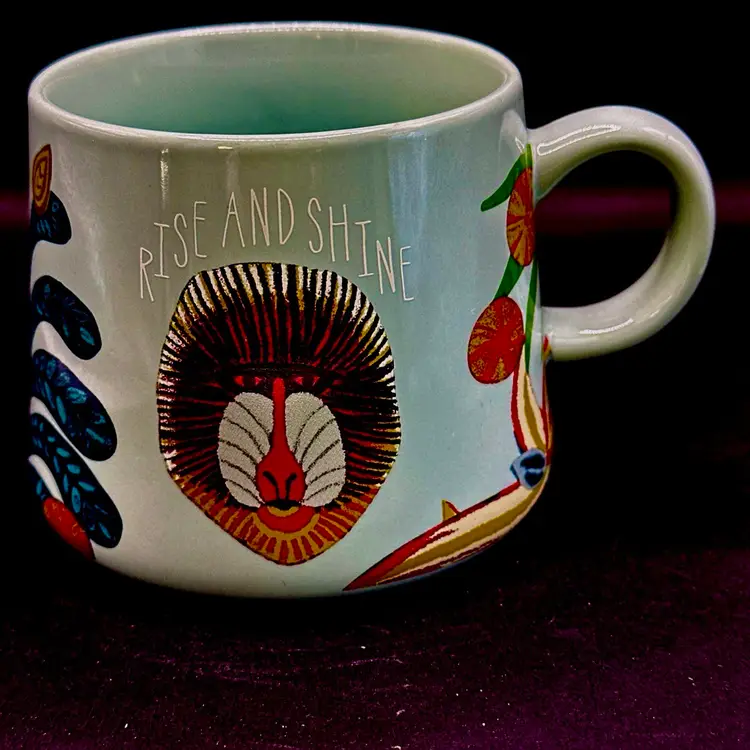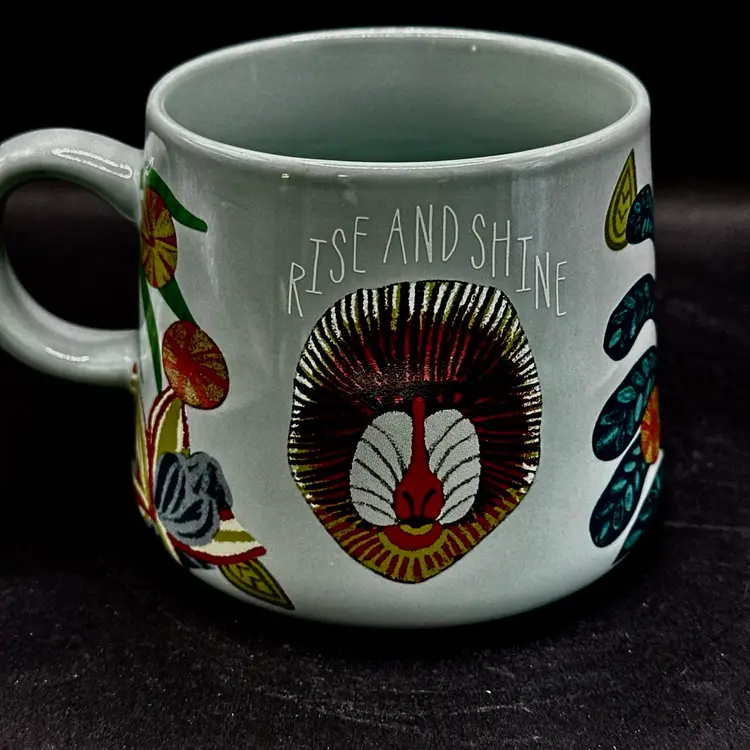 Opal House Mug Rise & Shine Tropical Jungle Baboon 16 oz Monkey Ape Aqua Colorfu