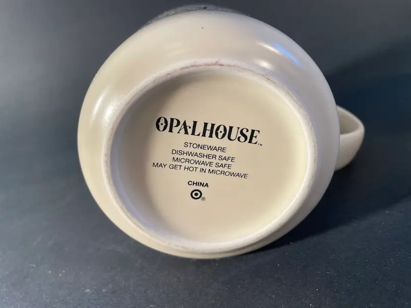 Opal House stoneware mug with a woman on it with a houseplant, and the words “Plant Person” on the inside of it. It is about 4” tall, and 3 1/2” across. It is in excellent condition, with no damage.