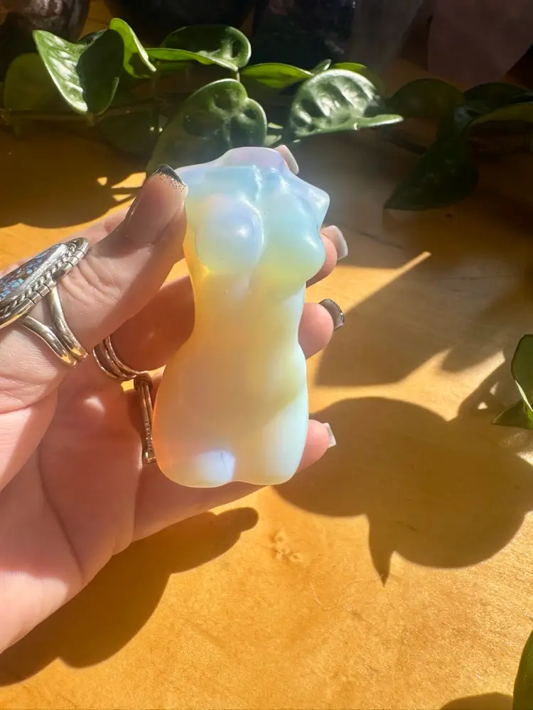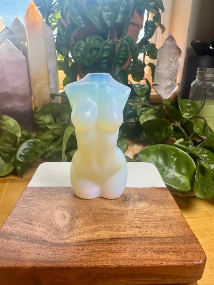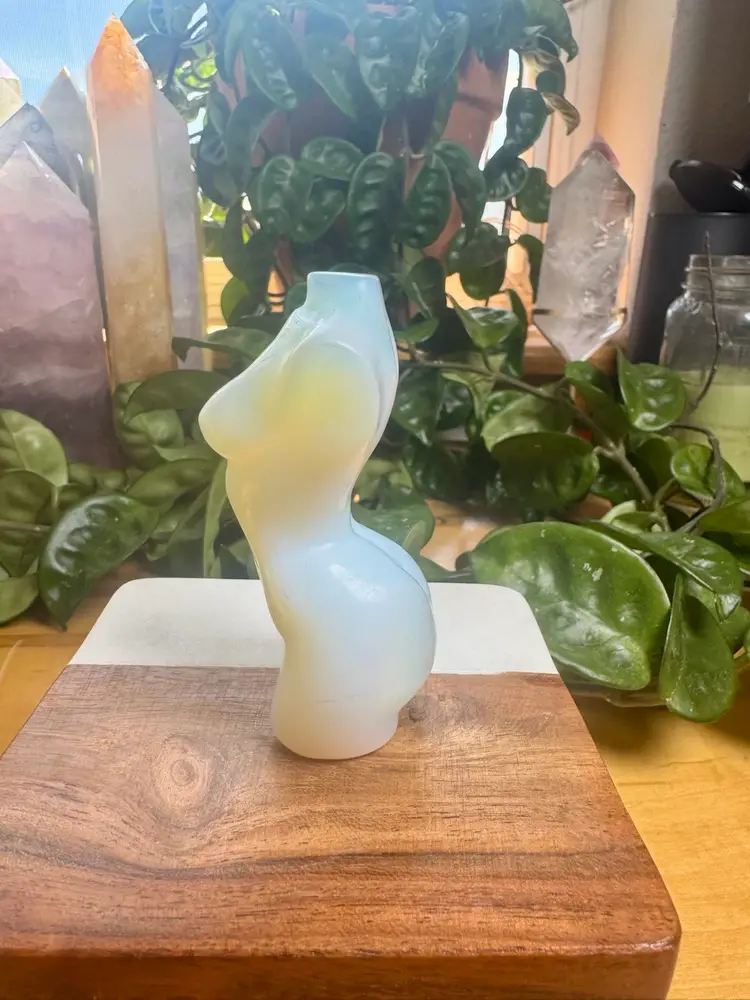 Opalite is a man-made glass that enhances emotional healing, improves communication, and promotes a sense of calm and inner peace.