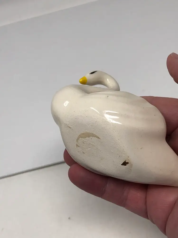 3" white swan ceramic dish. No markings or labels, no chips or cracks