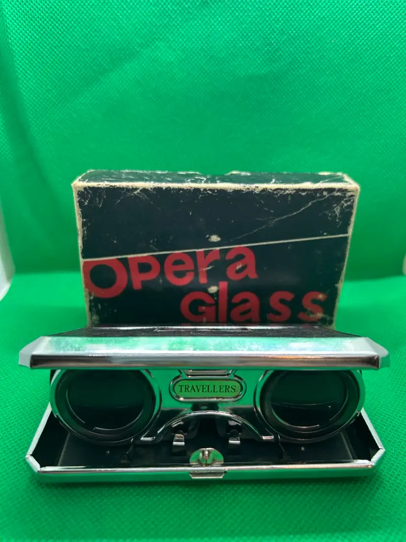 Travellers Opera glasses. Often referred to as “Butterfly Style”. From the late 1960s -early 1970s. 2.5 magnification with 25mm lenses. Manufactured in Japan. Please see photos as they are part of the description. Thank you for looking!