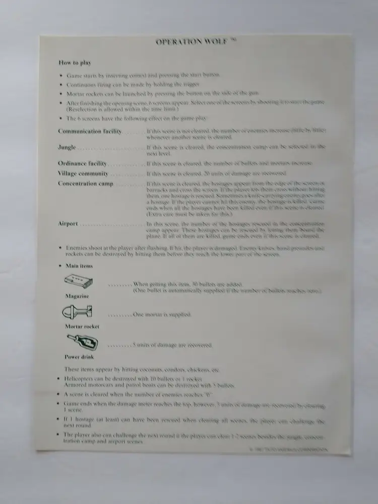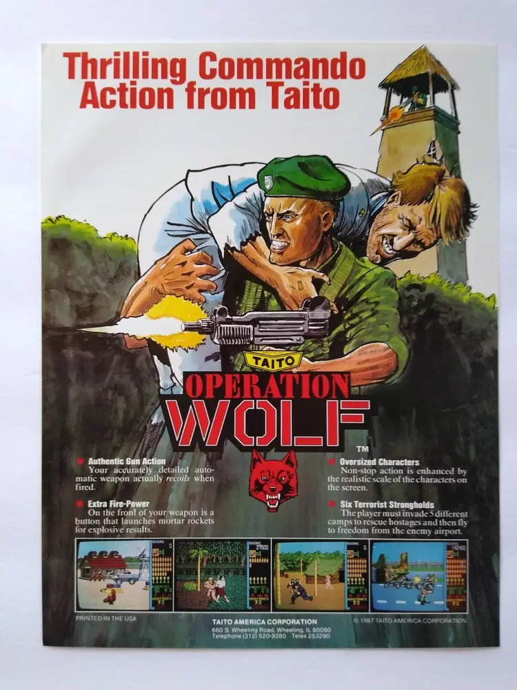 Arcade: Flyer Modified Item: No Country/Region of Manufacture: United States Original/Reproduction: Original Year: 1987 Game Title: Operation Wolf Brand: Taito