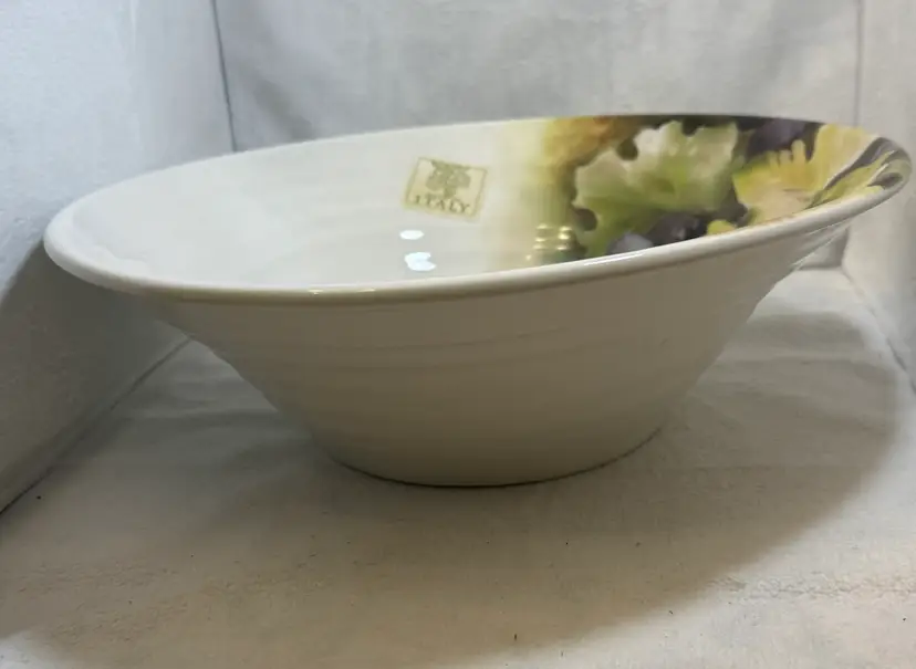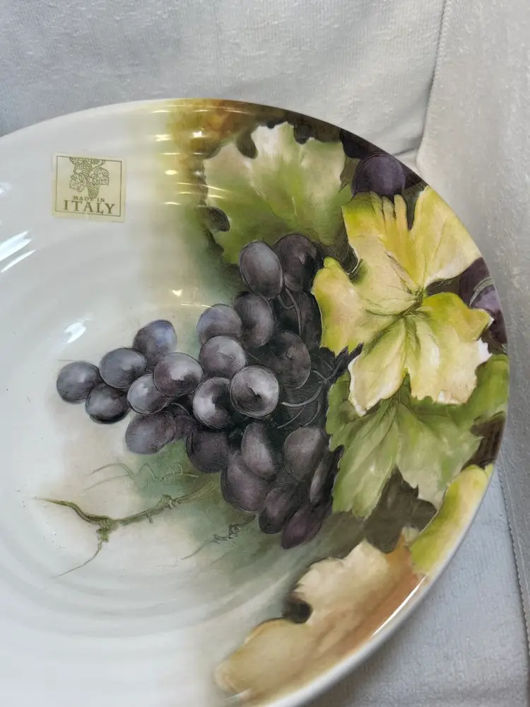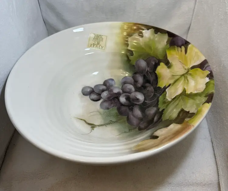 Beautiful ceramic bowl featuring a grape design. Perfect for serving or display. Hand Made in Italy. Measurements.: 4 inches in height and 12 1/2 inches in diameter. Excellent condition no chips, no cracks, or stains.