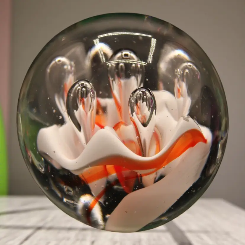 Orange & White Swirl with Bubbles Paperweight 3” Tall 15.3oz. No chips or cracks.