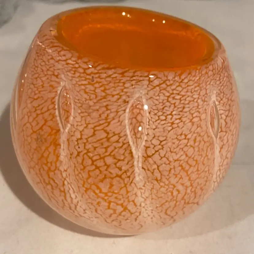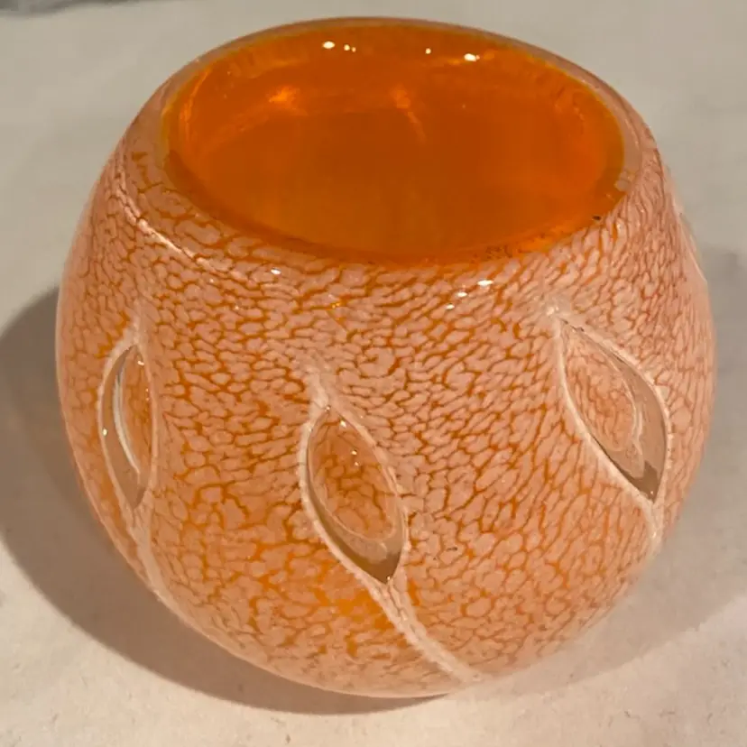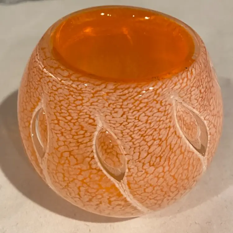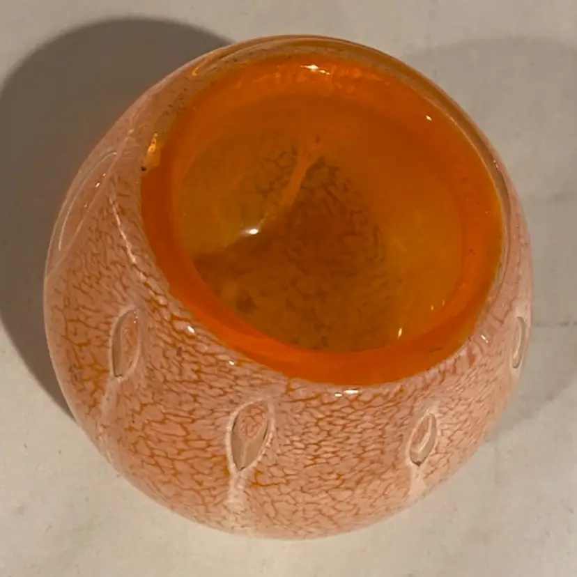 Votive bubble shaped tea light is unsigned but unique in design. Unable to attribute to any maker or source so listing as art glass.