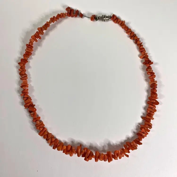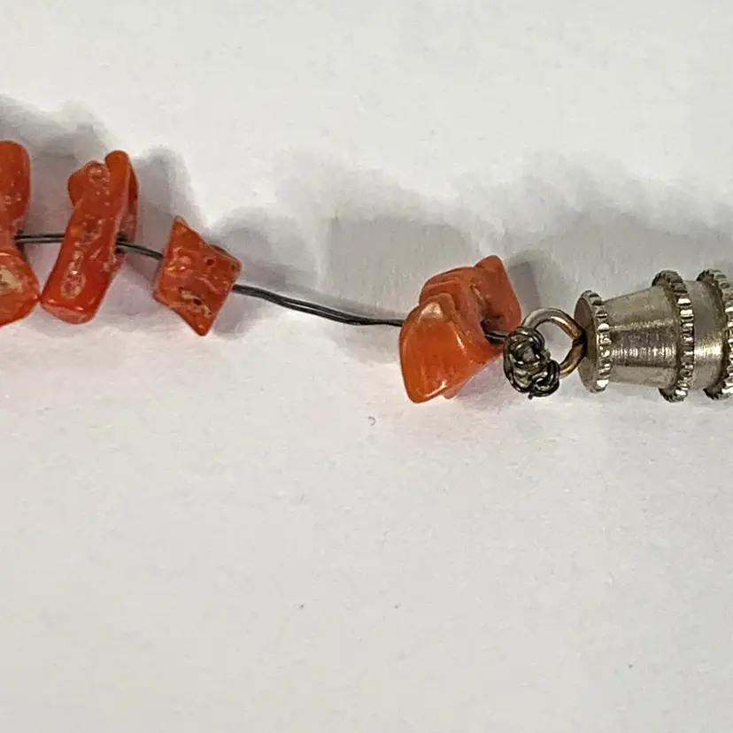 Strung on wire with barrel clasp.