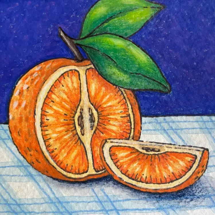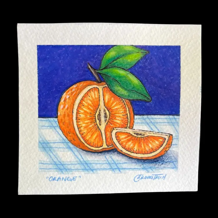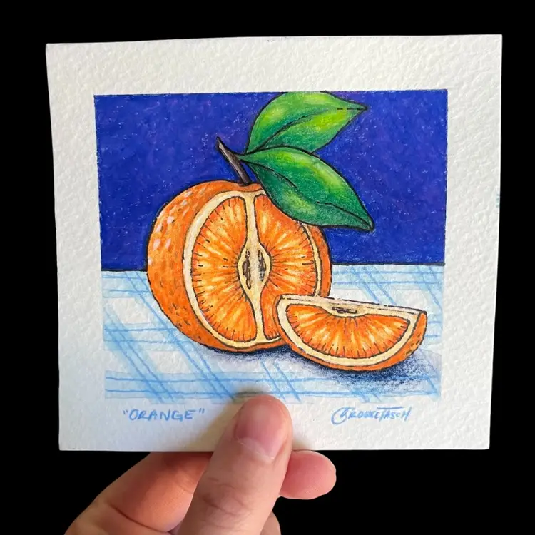 Approximately 4.5” x 4.25”. Watercolor and colored pencil on watercolor paper. Original artwork by me :)