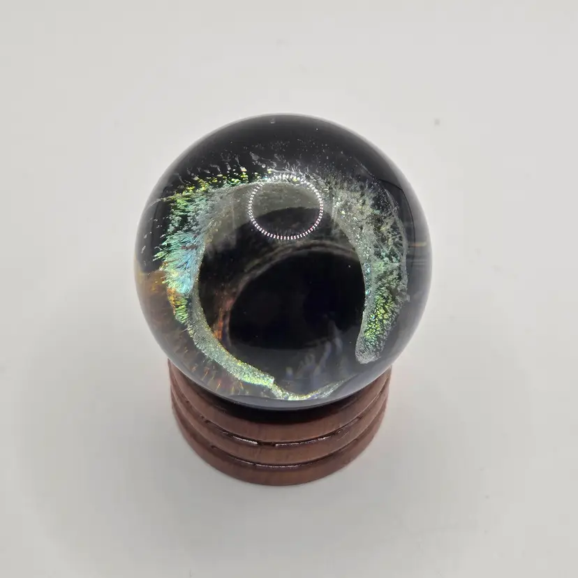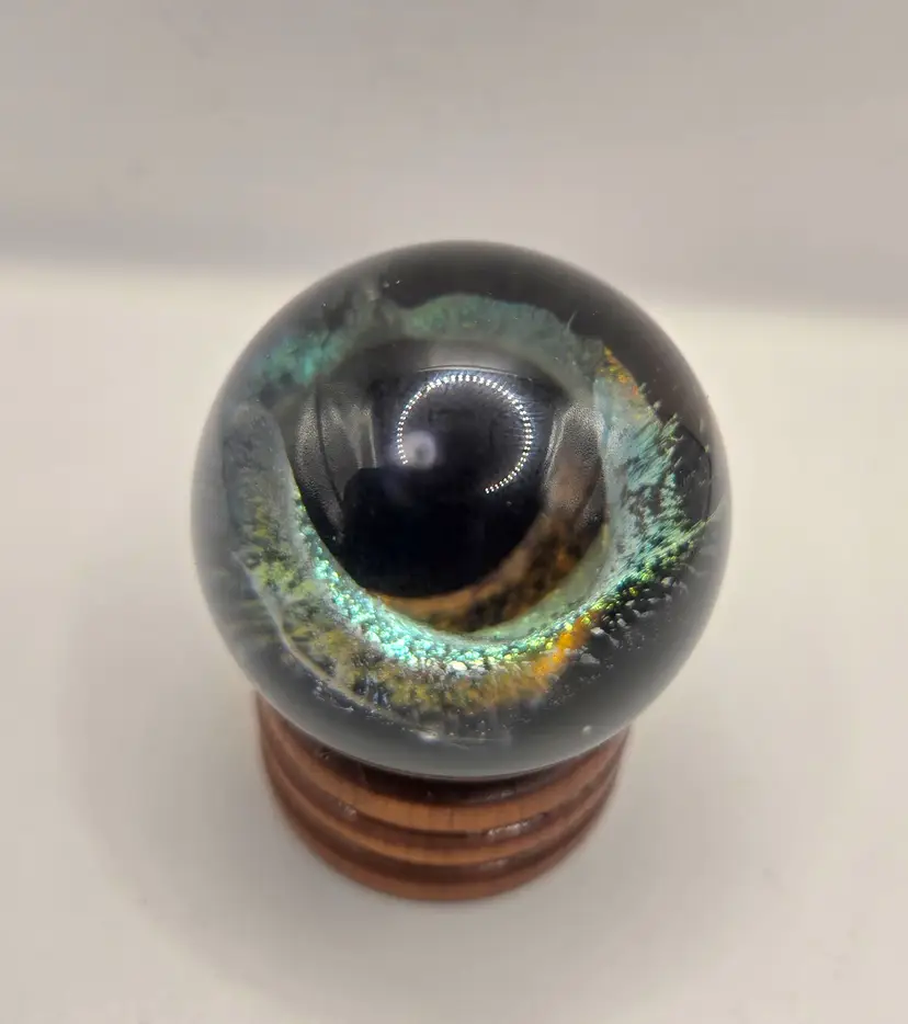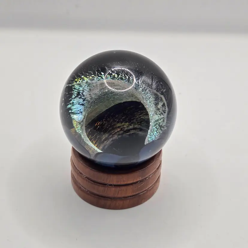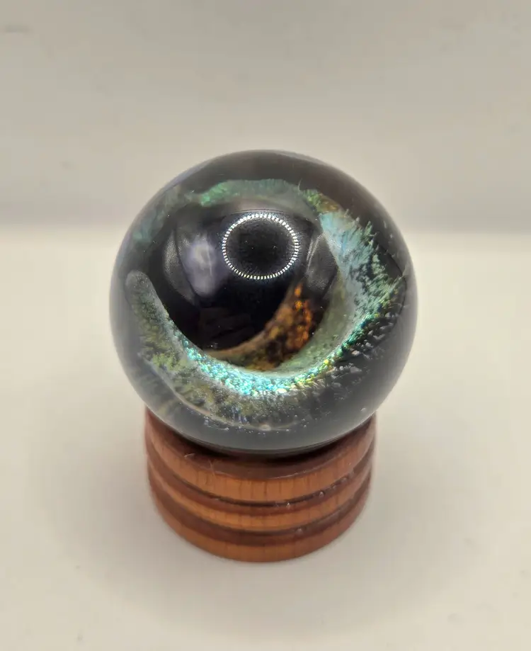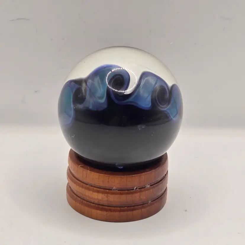 Orb Paperweight Nebula/Galaxy by Canadian Artist Brad Jesson. comes with stand. 2"- 2.75" on stand. No chips,cracks or bruises. 2 small dimples at back most likely from glass blowing pontil. Signed BJ on back. Please see photos as they are part of the description. Item will be well wrapped before shipping. Items from my listings can be combined for shipping if safe to do so.