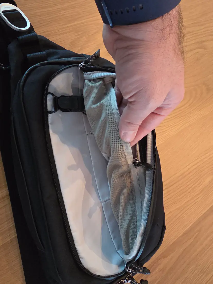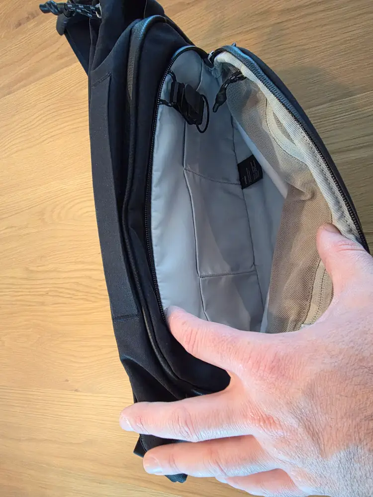 Really awesome sling that I just never use. I really love the organization of this sling. It's sooo roomy and it has pockets for days. I love the back pocket, I love the huge main compartment. I also really like the Mod Keychain ObritKey stole from Alpaka. I just didn't like the buckle on the strap of this sling. It seemed so basic. But literally everything else on it I loved.... Anyway, I only wore this out a couple of times before I went back to my trusty Alpaka Go Sling. I just can't quit that bag no matter how hard I try.