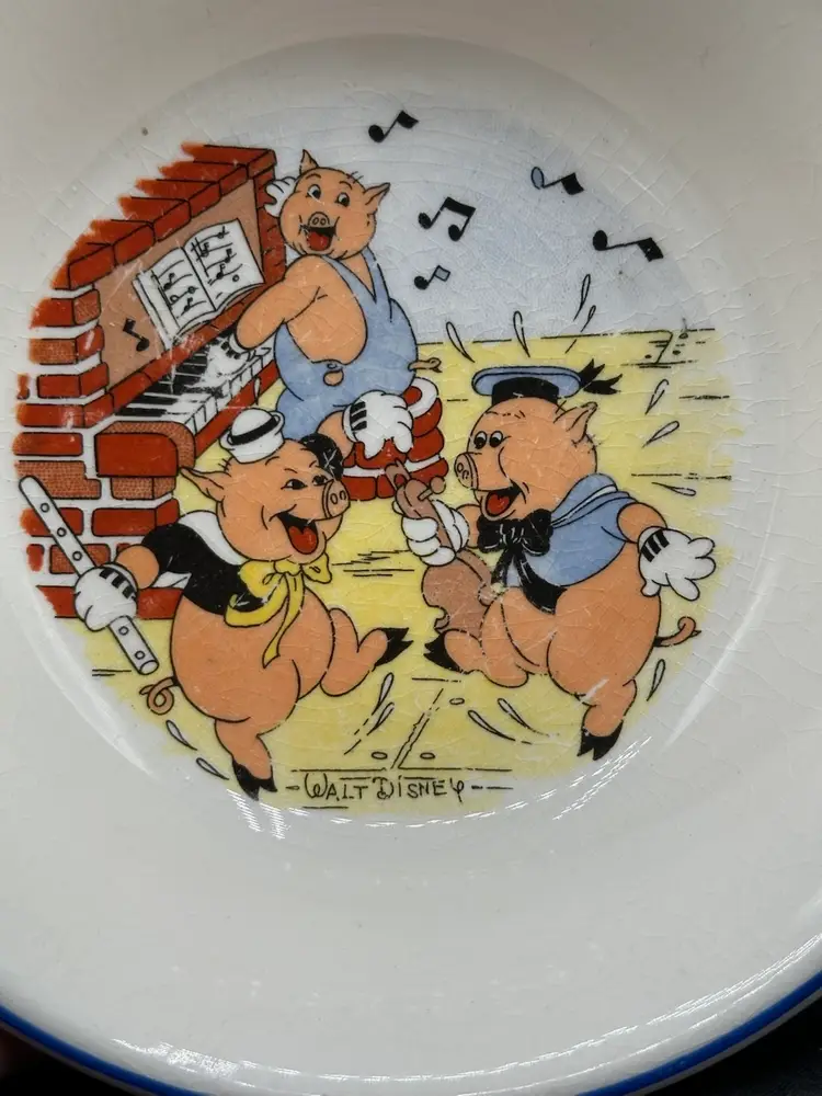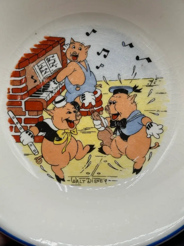 ORIGINAL 1930’s THE THREE LITTLE PIGS WALT DISNEY PATRIOT CHINA BOWL