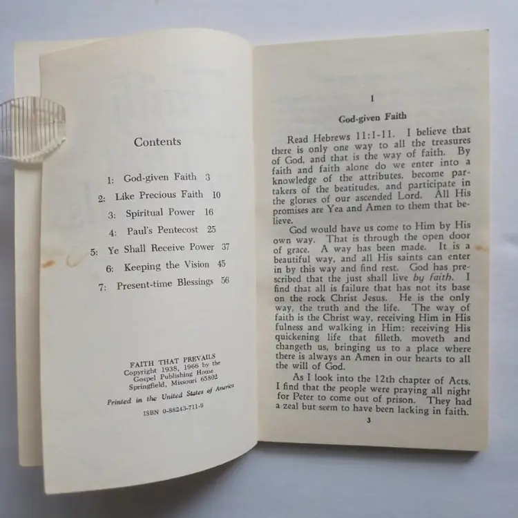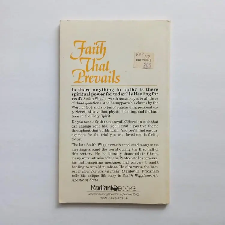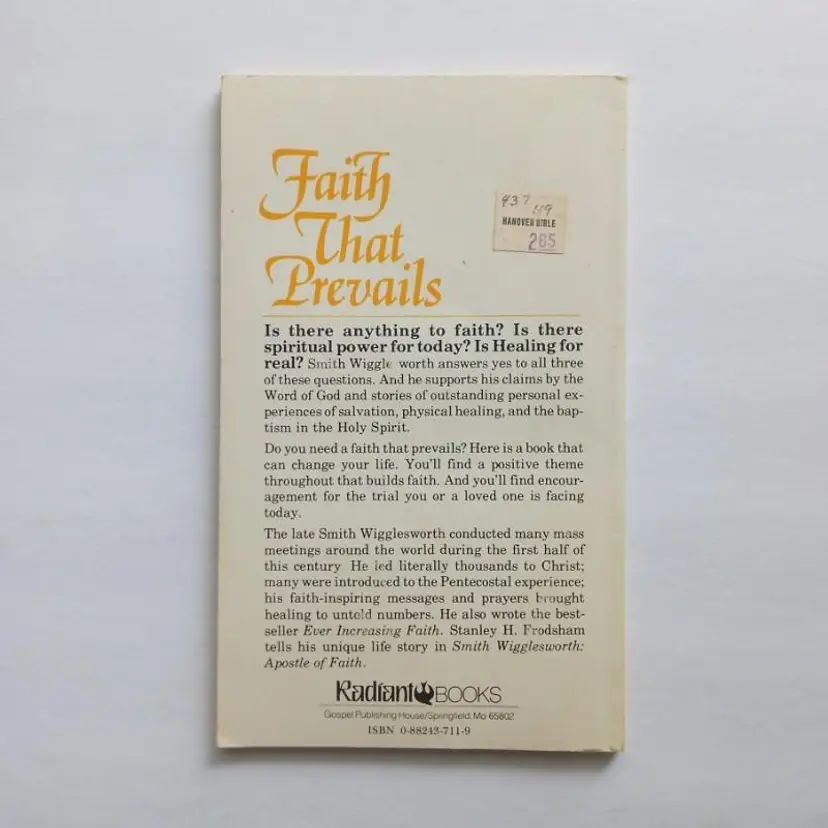 Original 1966 Faith That Prevails by Smith Wigglesworth Radiant Book is a vintage paperback book measuring 4.25 x 7 x .25 inches. Published by Radiant Books Gospel Publishing House, this second edition is a religious text focusing on faith, targeted towards young adults and adults. With 64 pages, the book explores spirituality and the power of faith during the 1960s. This enlightening piece by Smith Wigglesworth is a must-have for those seeking spiritual inspiration and growth. This is a very rare, hard to find copy of the 1966 edition.