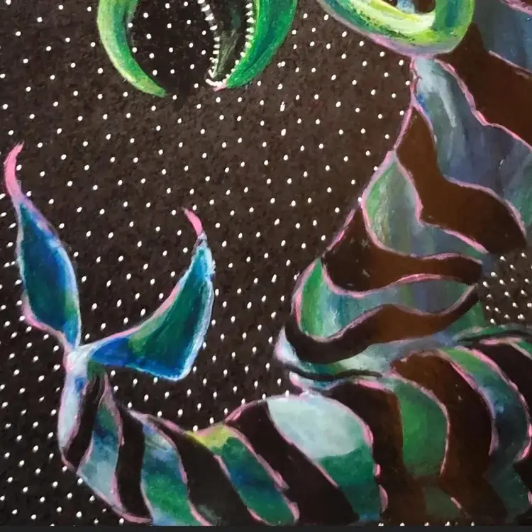 OOAK Artwork Dragon Halloween 3~D Look. Crazy Good Color Use of Greens & Hot Pink Gift For Gamers DND. She's Laughing Her Head Off! ๐ lol. Acrylic Painting 5 x 7" Dragon On Black Archival Paper Halloween Fantastic Visual Effect Spirals Great Use of Pink Gift Artwork. Kinna Really Love Her! ๐๐ค๐๐ค๐๐ค๐