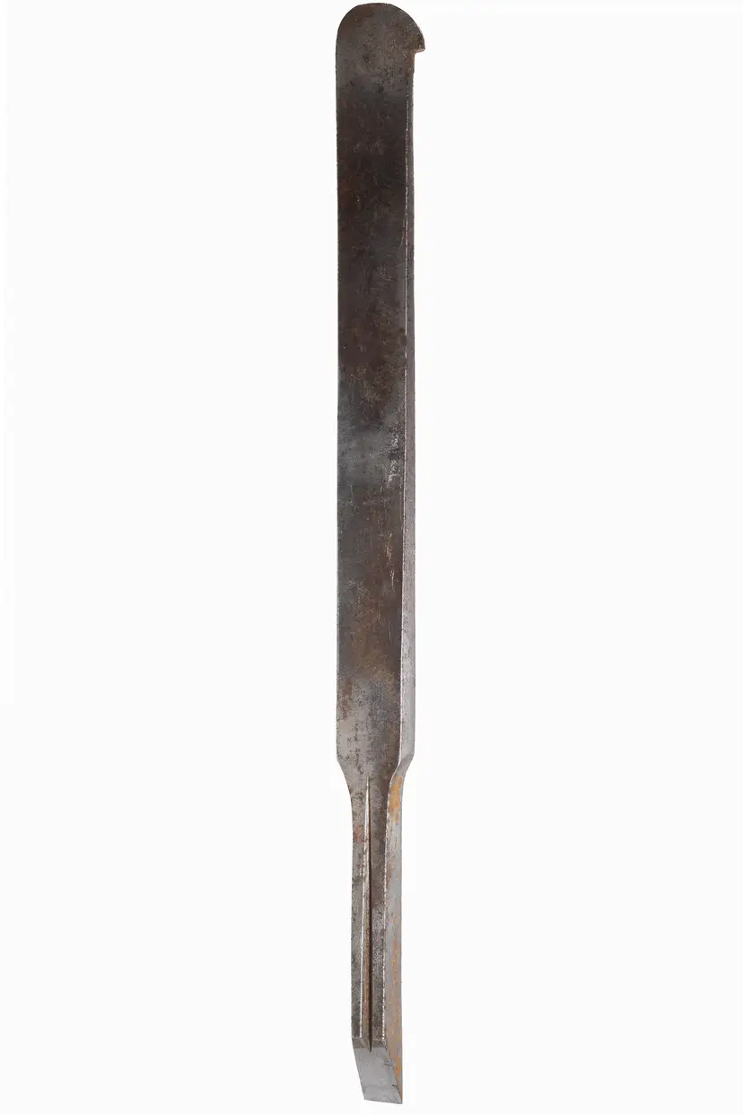 A solid original Ohio Tool Co. Thick Tapered Plow Plane Iron. It is 5/16" wide. It has a new primary and secondary bevel, and the face has been prepped enough to gage the condition. It will just need honed on both sides. It has "Ohio Tool Co." stamped in an arch at the top.