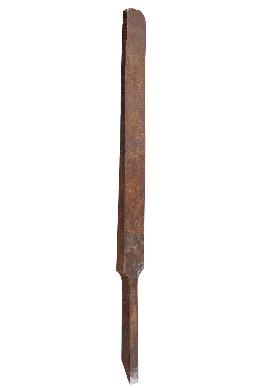 A solid original Ohio Tool Co. Thick Tapered Plow Plane Iron. It is 1/4" wide. It has a new primary and secondary bevel, and the face has been prepped enough to gage the condition. It will just need honed on both sides. It has "Ohio Tool Co." stamped in an arch at the top.