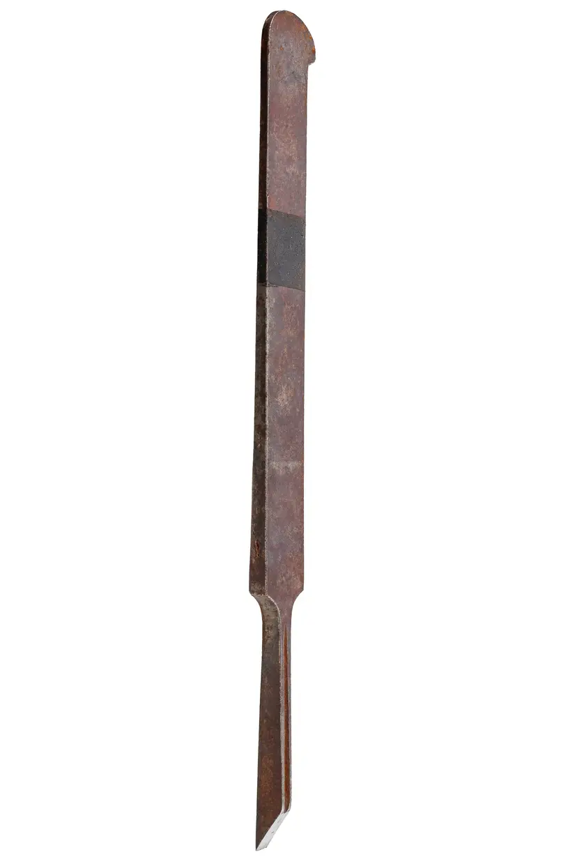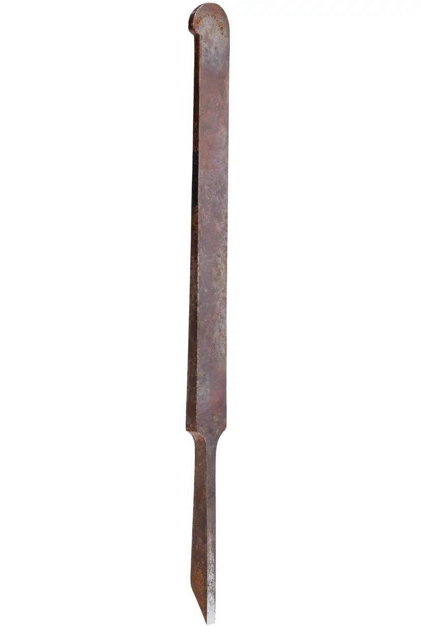 A solid original Ohio Tool Co. Thick Tapered Plow Plane Iron. It is 3/16" wide. It has a new primary and secondary bevel, and the face has been prepped enough to gage the condition. It will just need honed on both sides. It has "Ohio Tool Co." stamped in an arch at the top.
