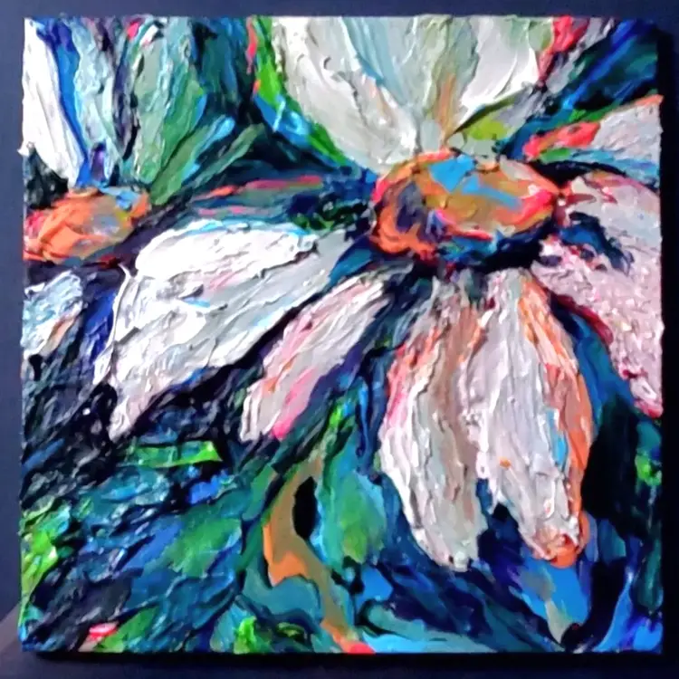 Titled: "Delious Daisey" Original Painting Art Piece. Hang Or Frame One Of A Kind. OOAK Art Collectable Small Home Decor. Small Art Wall Decor. Gift For All Gardeners Horticulture. Created With Palette Knife. COA CERTIFICATE OF AUTHENTICITY Included Signed