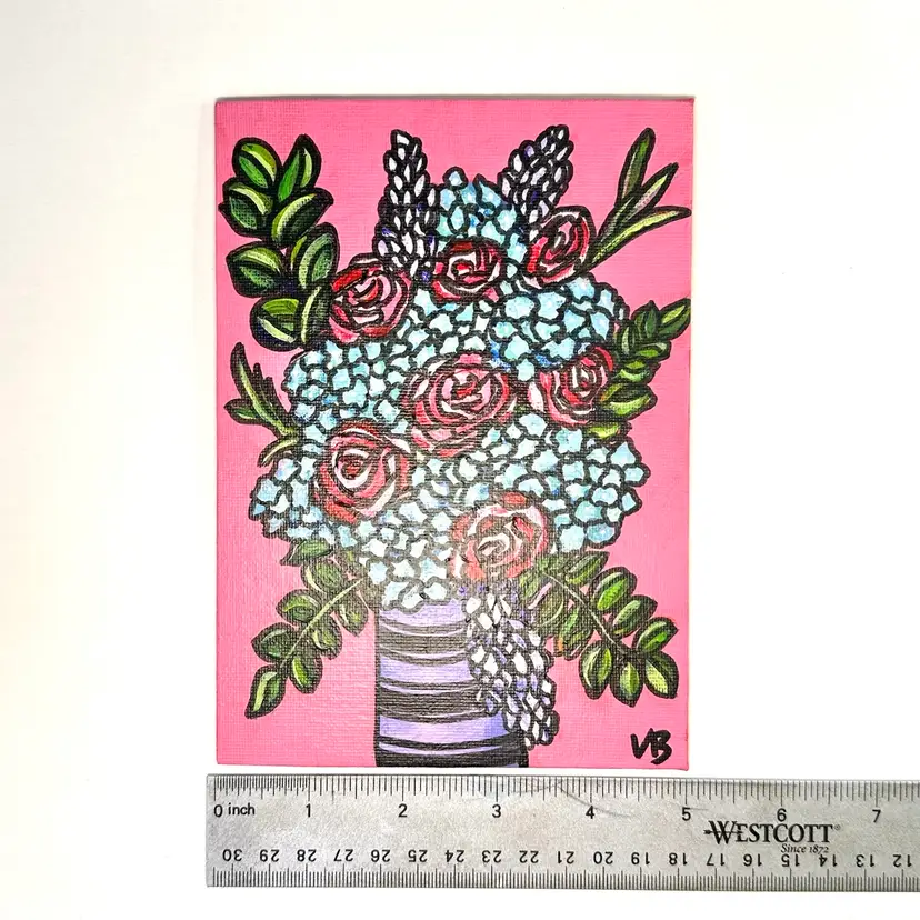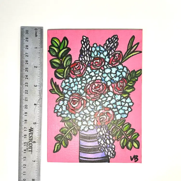 5x7 flat canvas board Original painting by me Acrylic florals Will fit a 5x7 frame for display Set of 3