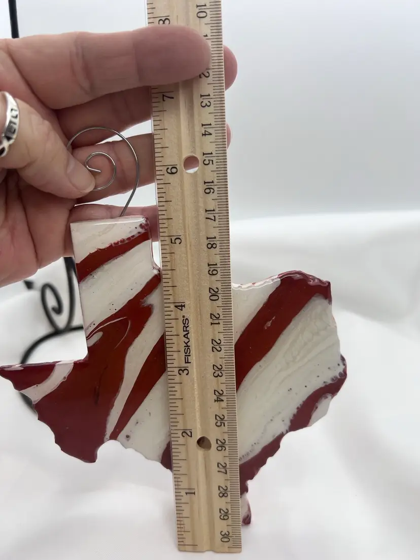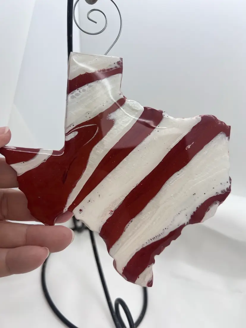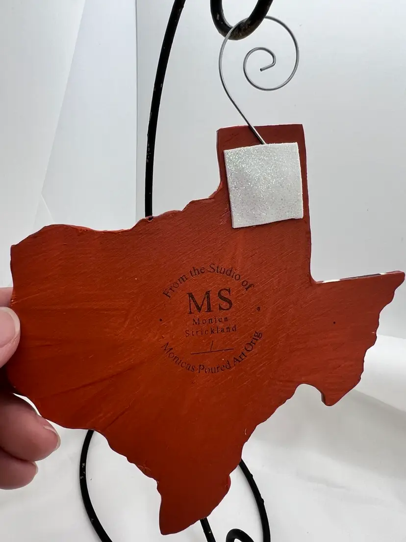 Original artwork created in my studio. One of a kind wooden ornament, acrylic pour painted in UT Longhorn colors of burnt orange and white, then sealed with resin. Comes with a curly hanger attached ready to display or gift. TXlh1