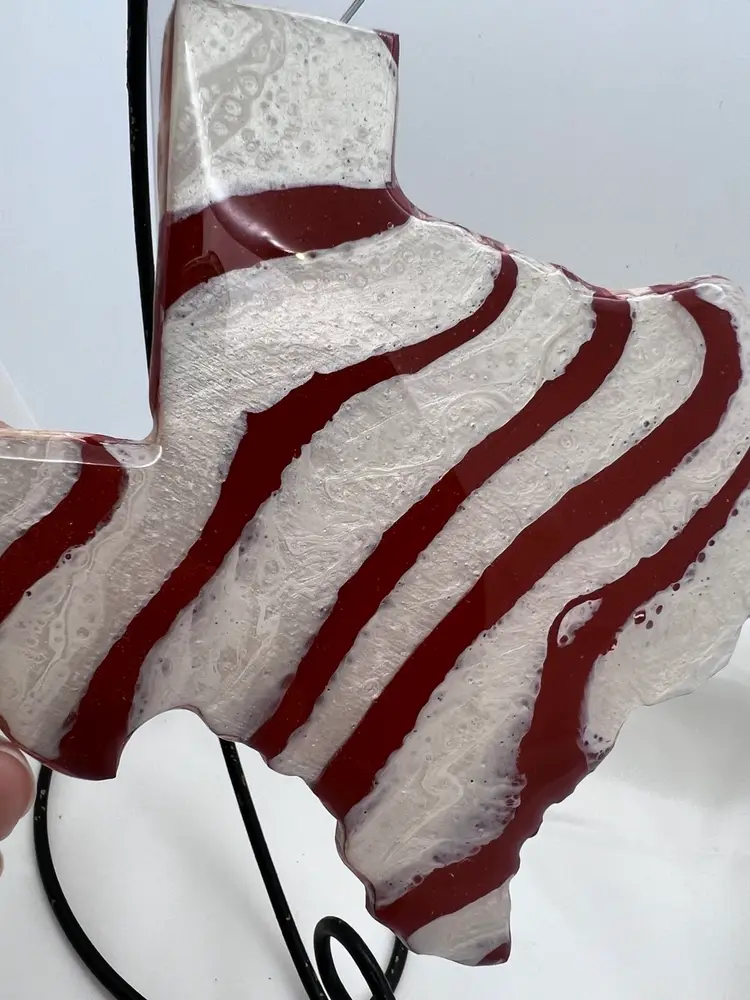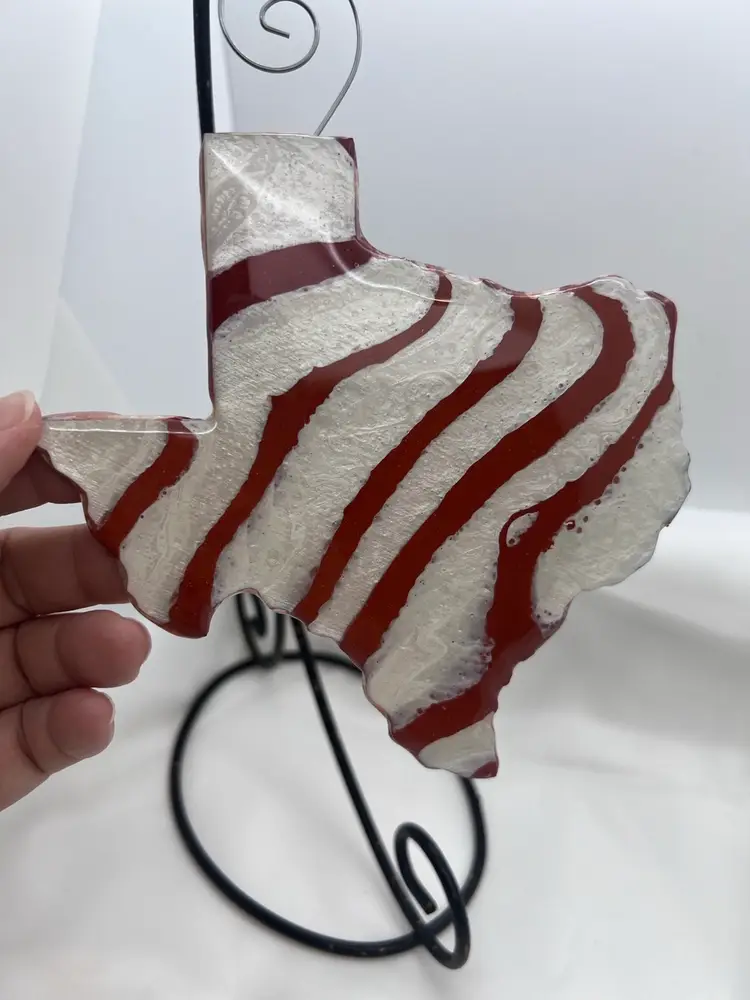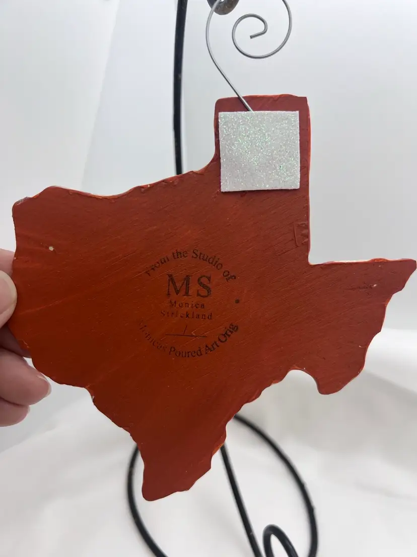Original artwork created in my studio. One of a kind wooden ornament, acrylic pour painted in UT Longhorn colors of burnt orange and white, then sealed with resin. Comes with a curly hanger attached ready to display or gift. TXlh3