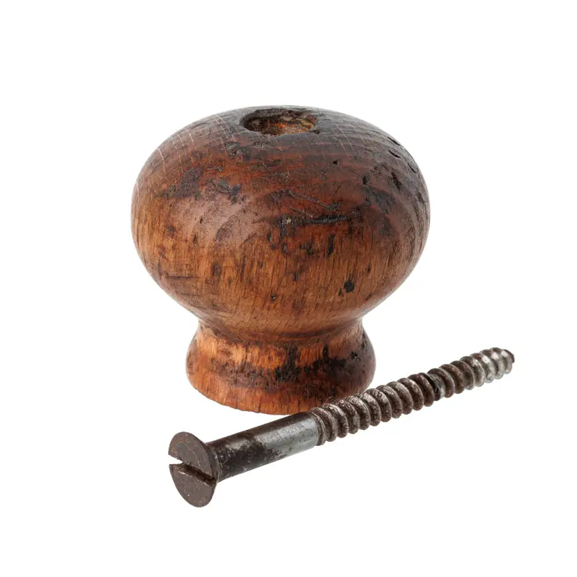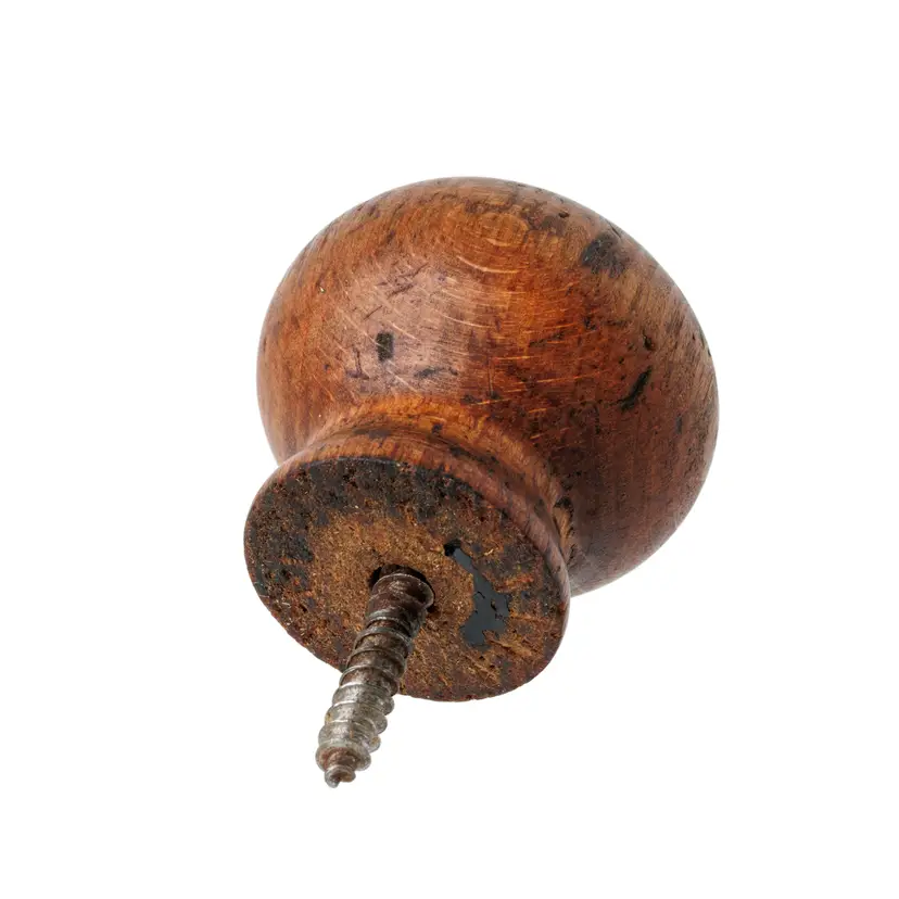 This is an original replacement beech knob and screw for Stanley's transitional wood-bottom planes. It was salvaged from a No. 37 plane and will fit most of the transitional plane models, though it is more suited for the larger jointer planes (No. 30, 31, 32, 33, 34, 37). No damage. 1.64" tall