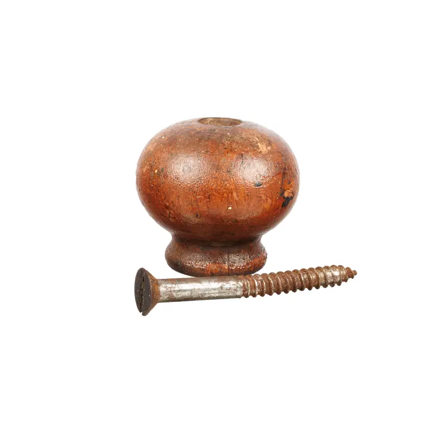 This is an original replacement beech knob and screw for Stanley's transitional wood-bottom planes. It was salvaged from a No. 26 plane and will fit most of the transitional plane models, though it is more suited for the smaller smoothing and jack planes (No. 22-27). No damage. 1.58" tall