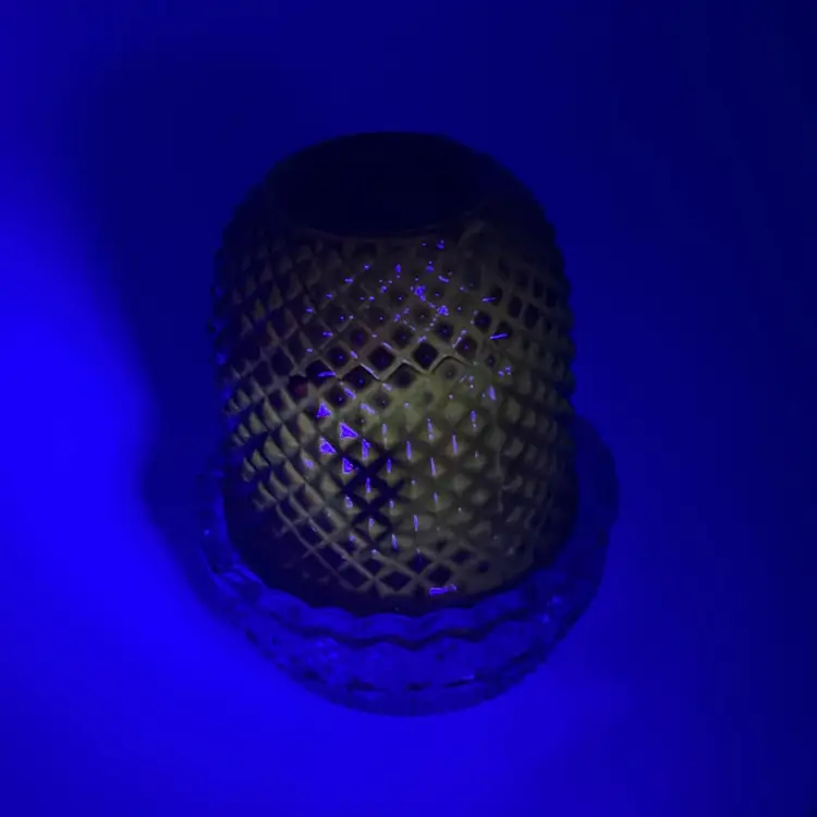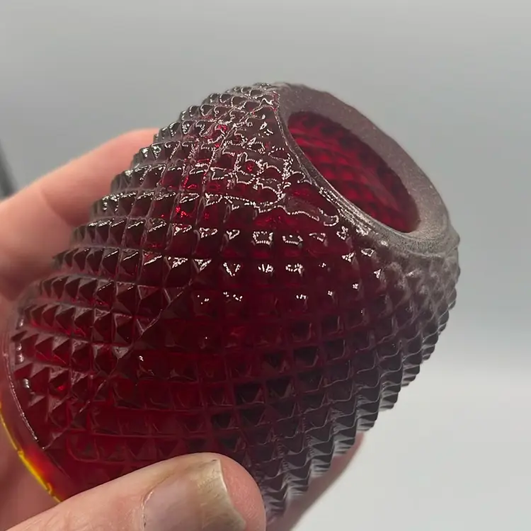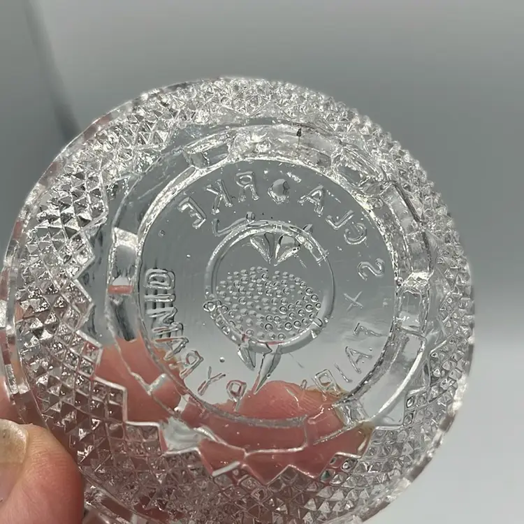 Note some chipping on the bottom of the clear base and inside of the top. Also some mold deformities.