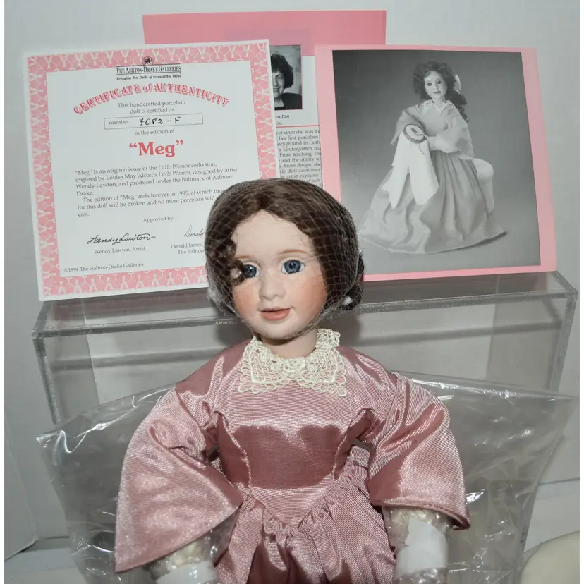 Meg is an original issue in the Little Women collection, inspired by Louisa May Alcott's Little Women, designed by artist Wendy Lawton, and produced under the hallmark of Ashton-Drake.