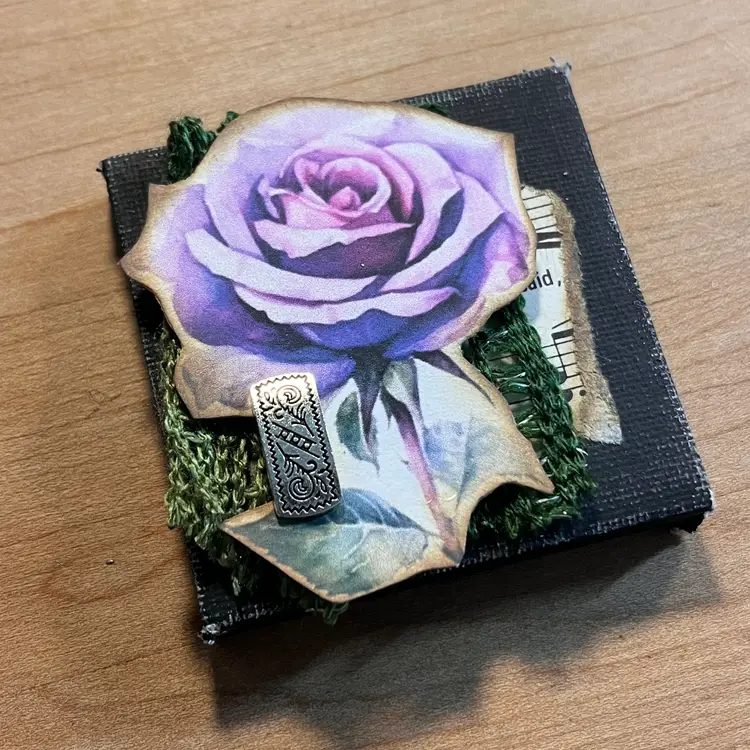 I just had to capture the beauty of the rose in this mini piece. This purple rose reminded me of my dad's roses. He grew them in his front yard and whenever they were in bloom he would cut one and give it to me. He is the reason I love roses.