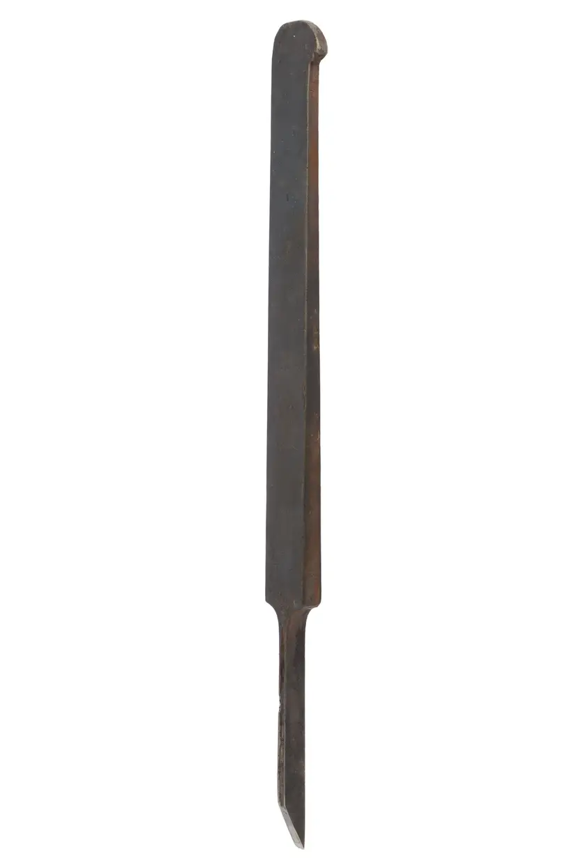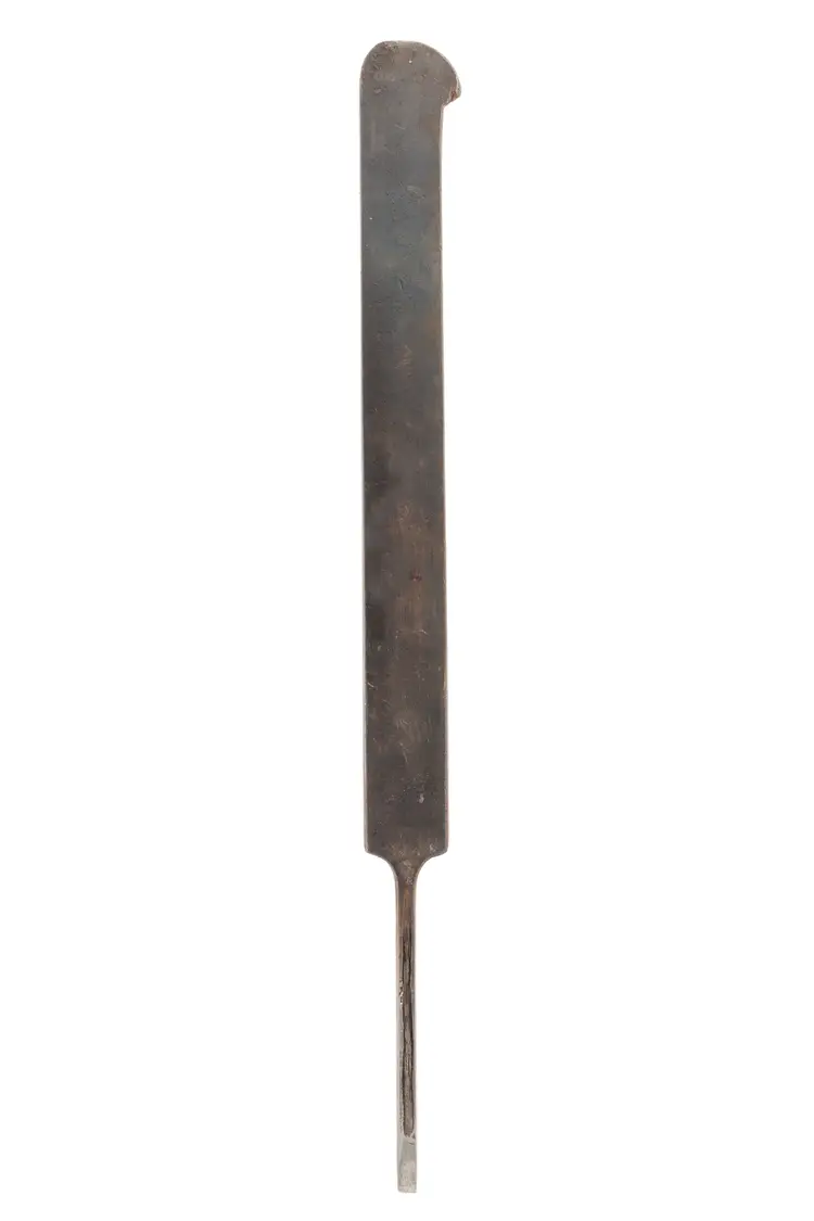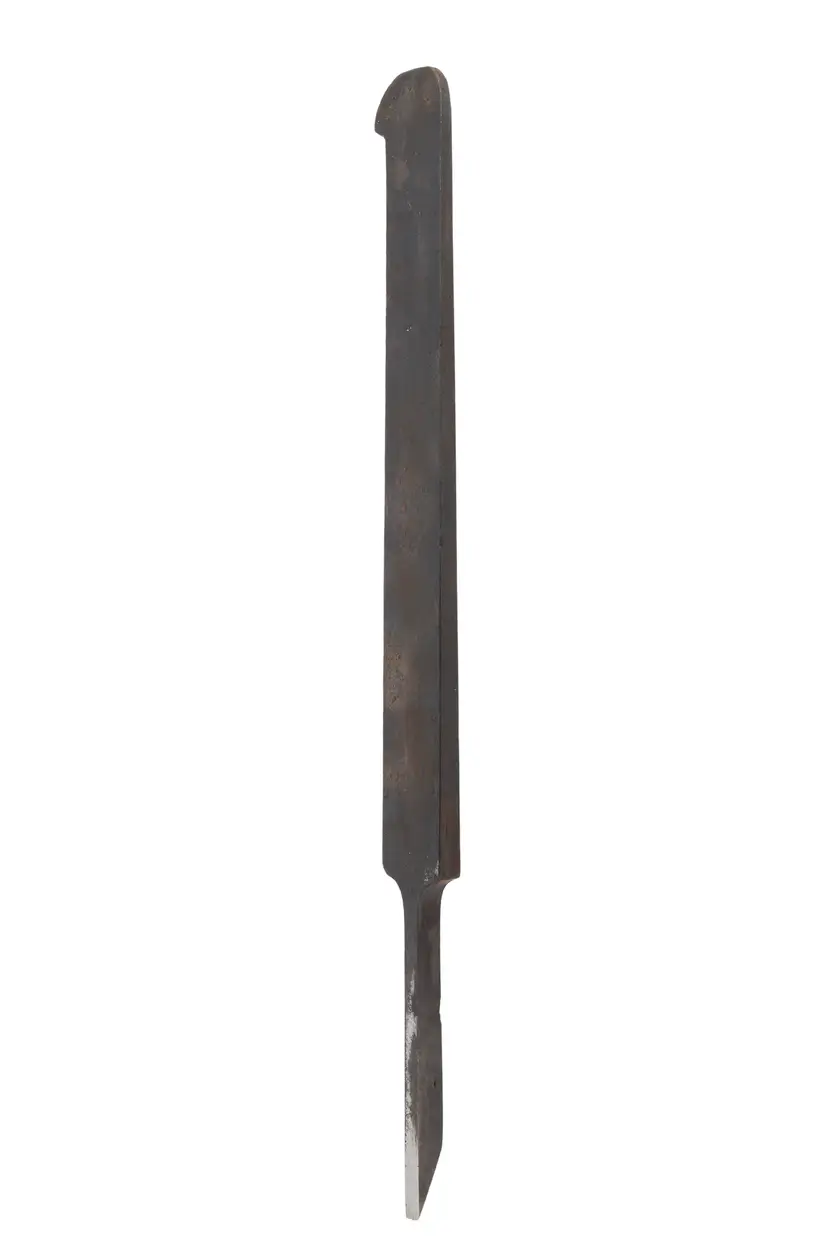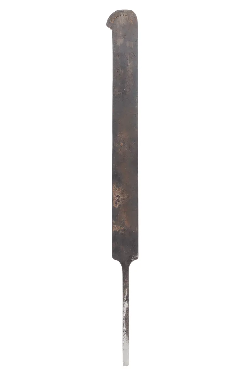 A nice plow plane iron by Ohio Tool Co. It cuts a 1/8" wide groove. It is nice and sharp, but will need honed. 8-1/2" long