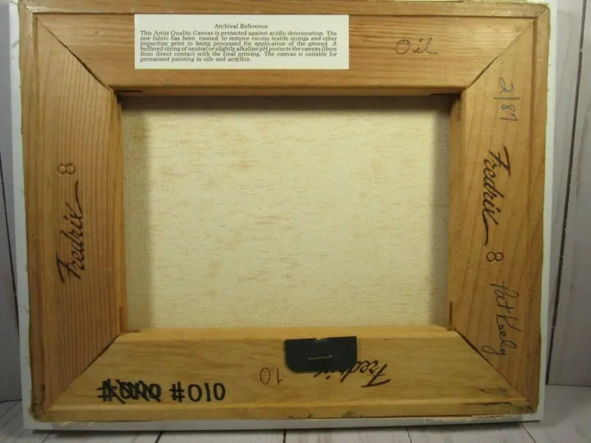 PRE-OWNED ORIGINAL OIL PAINTING BY ARTIST P. KEELY AKA: PAT KEELY or RP KEELY OR ROSEMARY P. KEELY "BOATHOUSE ON ROCKY PATH" #110 8 x 10 STRETCH CANVAS VERY GOOD CONDITION but a few brown age spots on the back of the painting (see picture) COMPLETED FEB 1987 SIMPLE INEXPENSIVE WHITE COMPOSITE FRAME Handicapped self-taught Florida artist/teacher. My late mother.