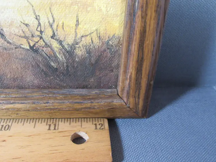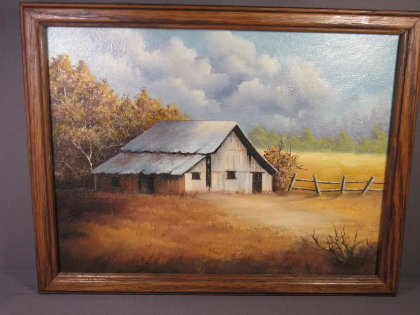 PRE-OWNED ORIGINAL OIL PAINTING 9 x 12 STRETCH CANVAS SIGNED ARTIST PAT KEELY AKA: ROSEMARY P. KEELY or RP KEELY "BARN LIFE" #038 THE PAINTING AND THE WOOD FRAME ARE IN EXCELLENT CONDITION BOTH THE PAINTING AND FRAME ARE VINTAGE (1990s) I CONDITIONED THE FRAME WITH BEESWAX Handicapped self-taught Florida artist/teacher. My late mother.
