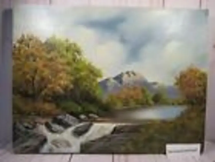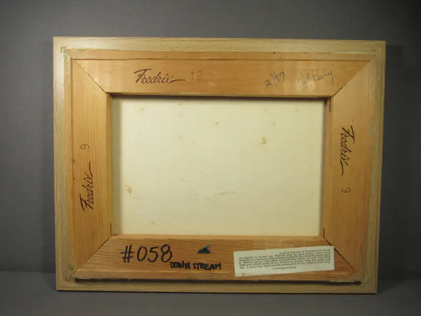 PRE-OWNED ORIGINAL OIL PAINTING BY ARTIST PAT KEELY AKA: ROSEMARY P. KEELY or RP KEELY "DOWN STREAM" #058 9 x 12" STRETCH CANVAS FRAMED: NEW LIGHT WOOD GRAIN LOOK STURDY PLASTIC MATERIAL ******VERY GOOD CONDITION BUT SOME MINOR SPOTTING ON TOP EDGE (see picture) ******BROWN AGE SPOTS ON THE BACK (see picture) COMPLETED 1987 Handicapped self-taught Florida artist/teacher. My late mother.