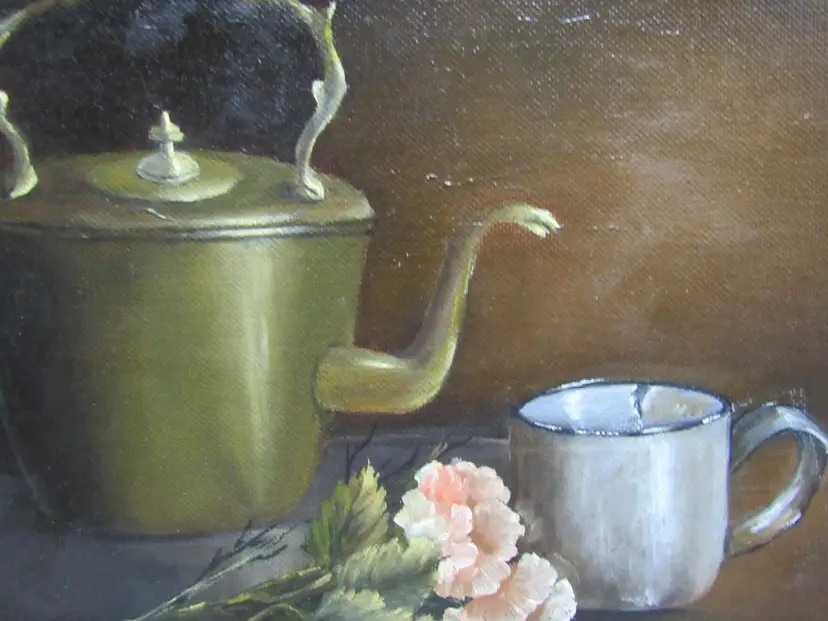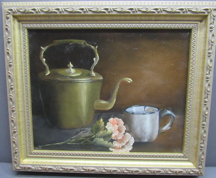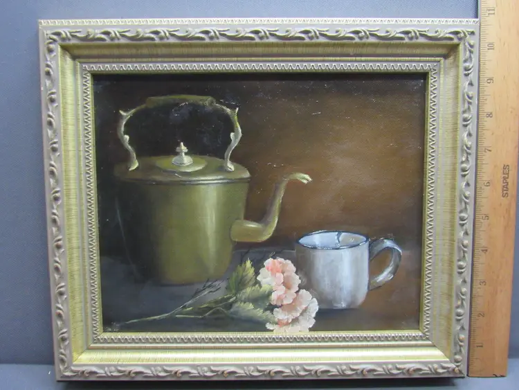 ORIGINAL OIL PAINTING 8 x 10 CANVAS BOARD SIGNED ARTIST PAT KEELY AKA: ROSEMARY KEELY or RP KEELY "BRASS" #024 ****THE PAINTING IS VINTAGE AND MAY SHOW SOME PAINT SCUFFS OR NUANCES *****THE ENGRAVED GOLD FRAME IS PRE-OWNED AND MAY SHOW WEAR A NICK OR TWO. ****THE FRAME IS 12.5" x 10.5" Handicapped Florida artist/teacher. My late mother.