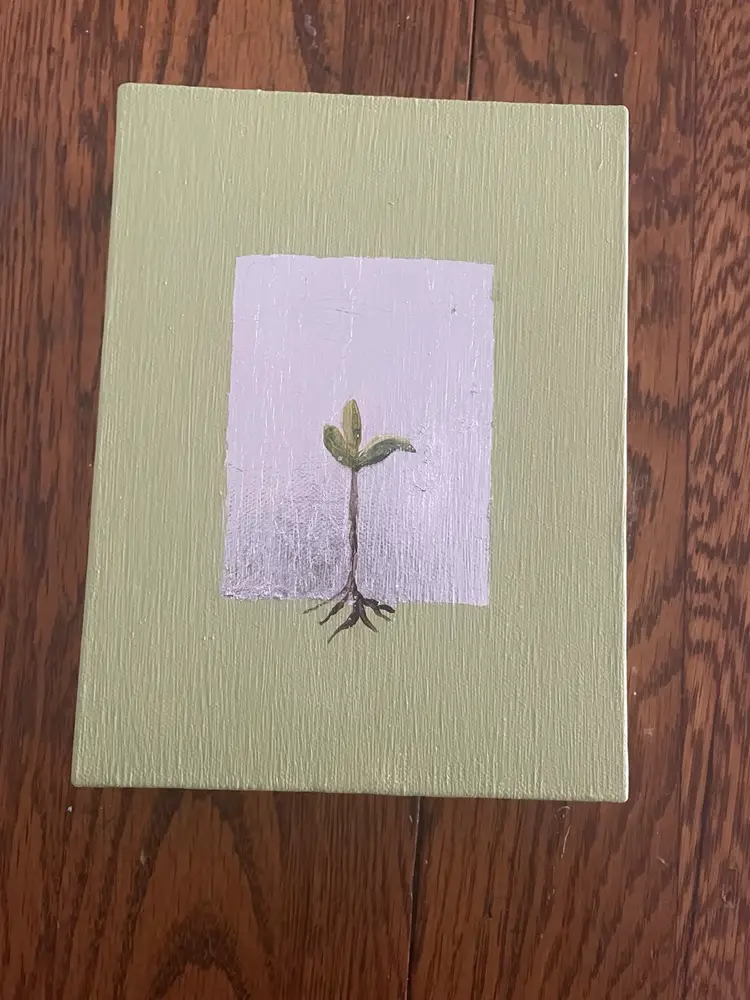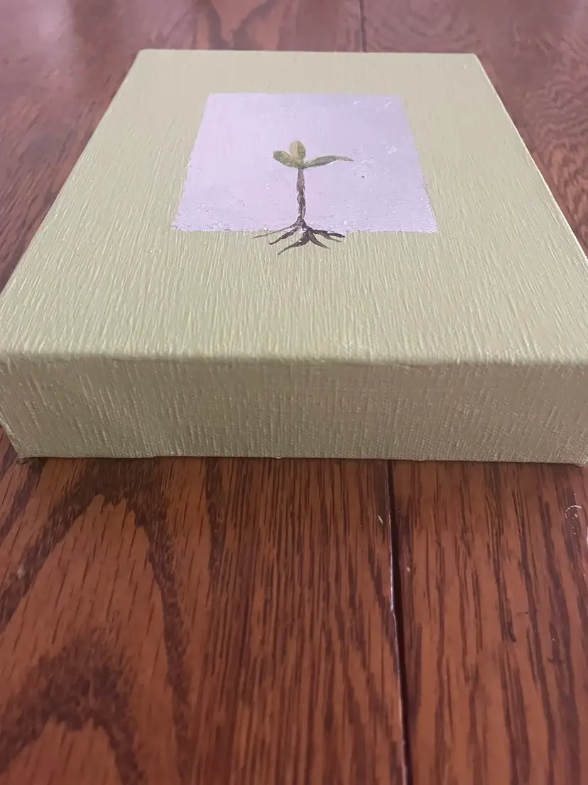 Original Artwork entitled “Emerging” Acrylic with Silver Leaf on canvas 6”x8”x1 1/2” deep canvas Perfect for person starting a new course of study or career. Also for a new mother or in a nursery. Smoke and Pet free environment