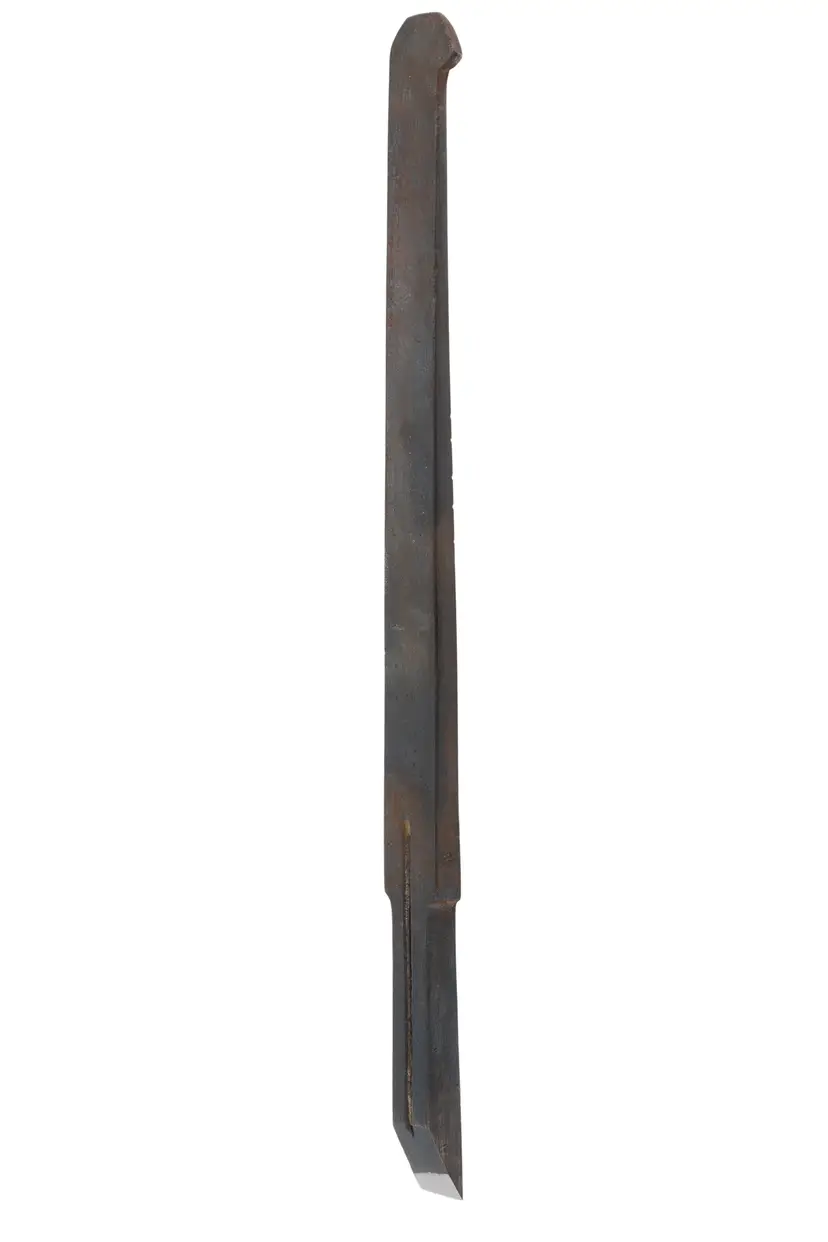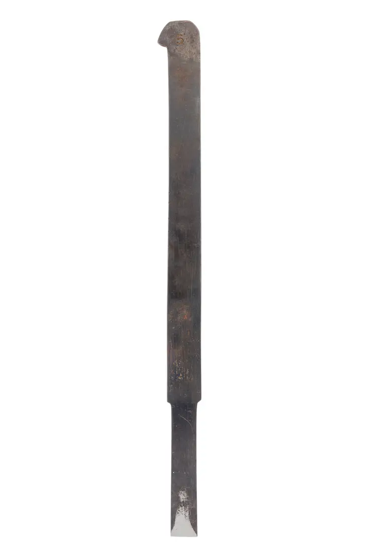 A nice, unmarked plow plane iron. It cuts a 7/16" wide groove. It is nice and sharp but will need honed. 8-1/4" long. Stamped with a "5"